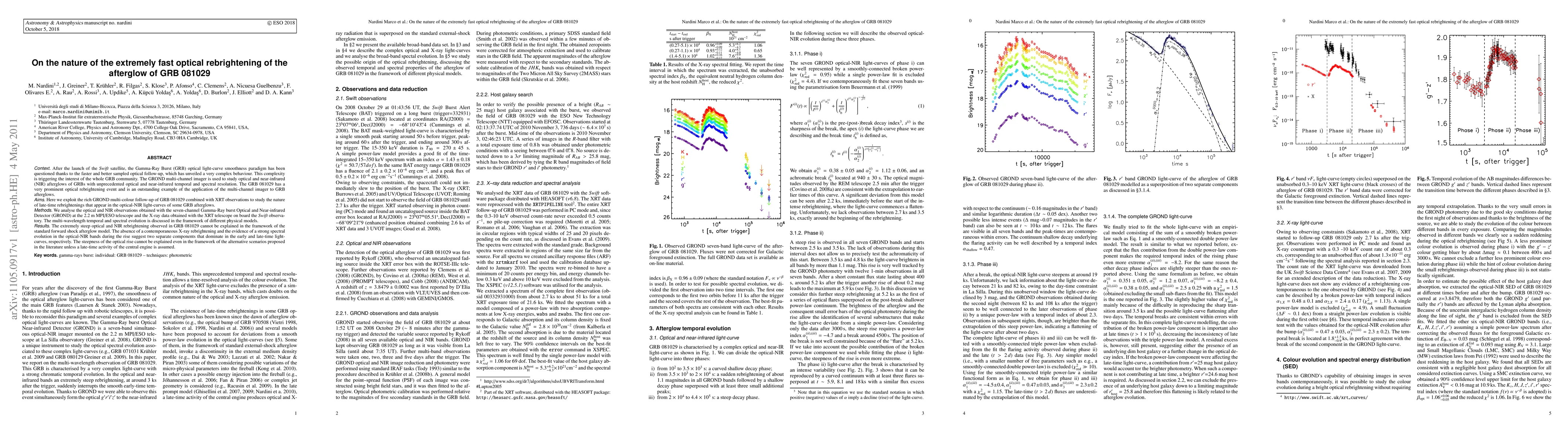 Context. After the launch of the Swift satellite, the Gamma-Ray Burst (GRB) optical light-curve smoothness paradigm has been questioned thanks to the faster and better sampled optical follow-up, which has unveiled a very complex behaviour. This complexity is triggering the interest of the whole GRB community. The GROND multi-channel imager is used to study optical and near-infrared (NIR) afterglows of GRBs with unprecedented optical and near-infrared temporal and spectral resolution. The GRB 081029 has a very prominent optical rebrightening event and is an outstanding example of the application of the multi-channel imager to GRB afterglows. Aims. Here we exploit the rich GROND multi-colour follow-up of GRB 081029 combined with XRT observations to study the nature of late-time rebrightenings that appear in the optical-NIR light-curves of some GRB afterglows. Methods. We analyse the optical and NIR observations obtained with the seven-channel Gamma-Ray burst Optical and Near-infrared Detector (GROND) at the 2.2 m MPI/ESO telescope and the X-ray data obtained with the XRT telescope on board the Swift observatory. The multi-wavelength temporal and spectral evolution is discussed in the framework of different physical models. Results. The extremely steep optical and NIR rebrightening observed in GRB 081029 cannot be explained in the framework of the standard forward shock afterglow model. The absence of a contemporaneous X-ray rebrightening and the evidence of a strong spectral evolution in the optical-NIR bands during the rise suggest two separate components that dominate in the early and late-time lightcurves, respectively. The steepness of the optical rise cannot be explained even in the framework of the alternative scenarios proposed in the literature unless a late-time activity of the central engine is assumed.