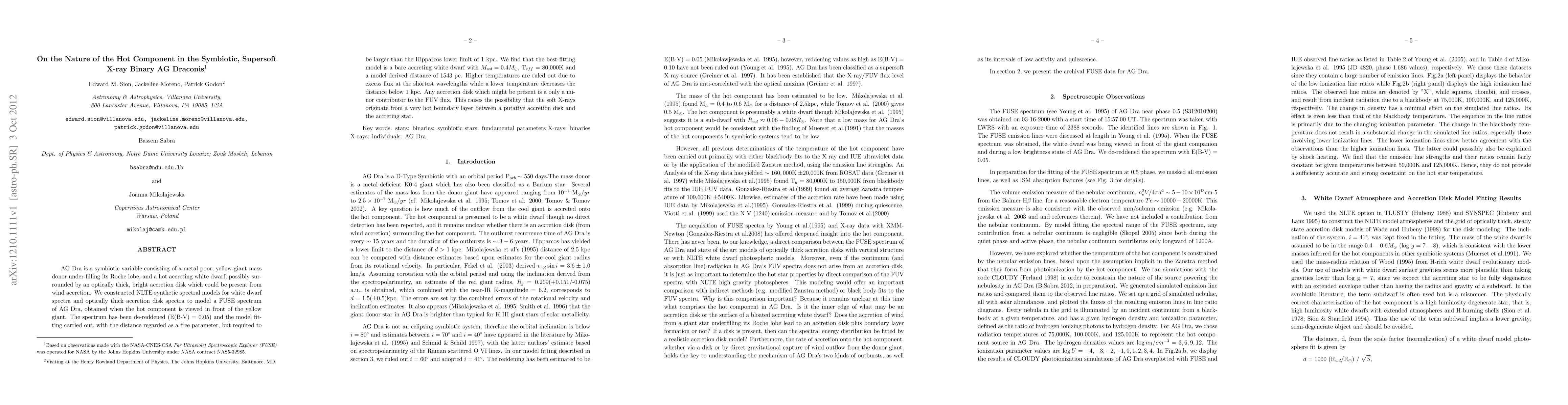 AG Dra is a symbiotic variable consisting of a metal poor, yellow giant mass donor under-filling its Roche lobe, and a hot accreting white dwarf, possibly surrounded by an optically thick, bright accretion disk which could be present from wind accretion. We constructed NLTE synthetic spectral models for white dwarf spectra and optically thick accretion disk spectra to model a FUSE spectrum of AG Dra, obtained when the hot component is viewed in front of the yellow giant. The spectrum has been de-reddened (E(B-V) = 0.05) and the model fitting carried out, with the distance regarded as a free parameter, but required to be larger than the Hipparcos lower limit of 1 kpc. We find that the best-fitting model is a bare accreting white dwarf with Mwd = 0.4 Msun, Teff = 80,000K and a model-derived distance of 1543 pc. Higher temperatures are ruled out due to excess flux at the shortest wavelengths while a lower temperature decreases the distance below 1 kpc. Any accretion disk which might be present is a only a minor contributor to the FUV flux. This raises the possibility that the soft X-rays originate from a very hot boundary layer between a putative accretion disk and the accreting star.