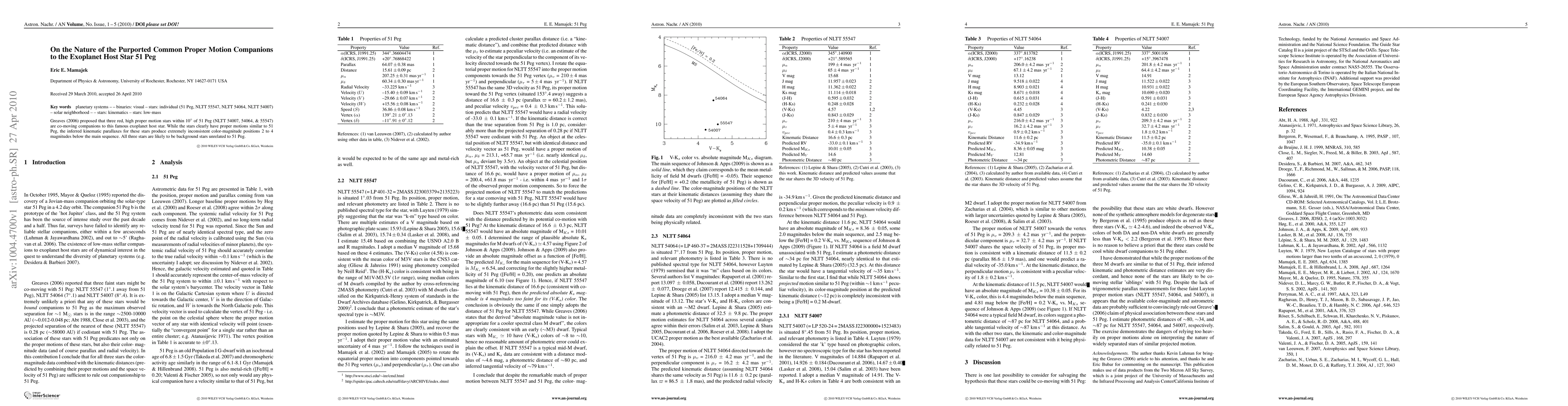 Greaves (2006) proposed that three red, high proper motion stars within 10 degrees of 51 Peg (NLTT 54007, 54064, & 55547) are co-moving companions to this famous exoplanet host star. While the stars clearly have proper motions similar to 51 Peg, the inferred kinematic parallaxes for these stars produce extremely inconsistent color-magnitude positions 2 to 4 magnitudes below the main sequence. All three stars are likely to be background stars unrelated to 51 Peg.