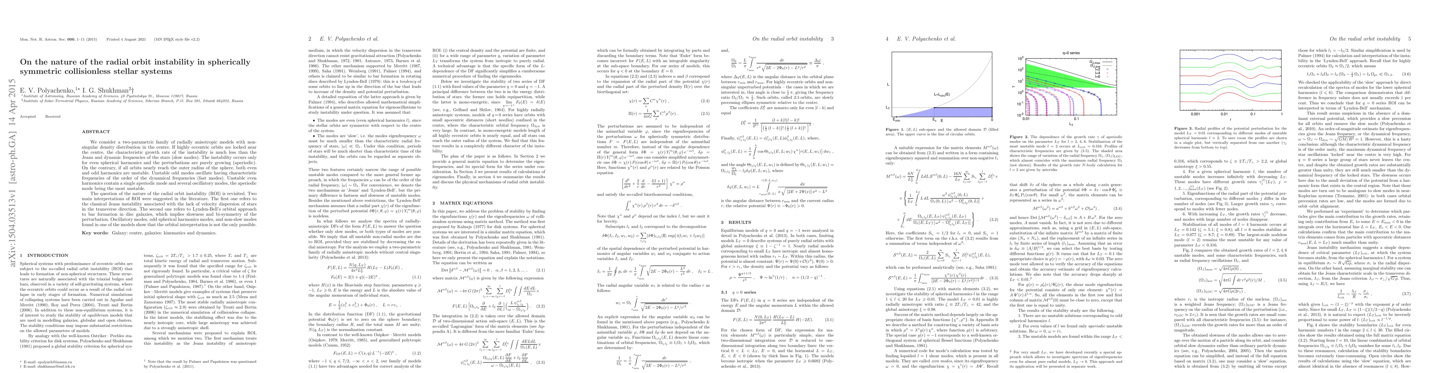 This paper explores the radial orbit instability (ROI) in spherically symmetric stellar systems, finding that its nature depends on whether orbits are eccentric or nearly reach the system's outer radius. It challenges the classical Jeans instability and Lynden-Bell's orbital approach by identifying both aperiodic and oscillatory modes, indicating that ROI can manifest in both slow and fast modes.