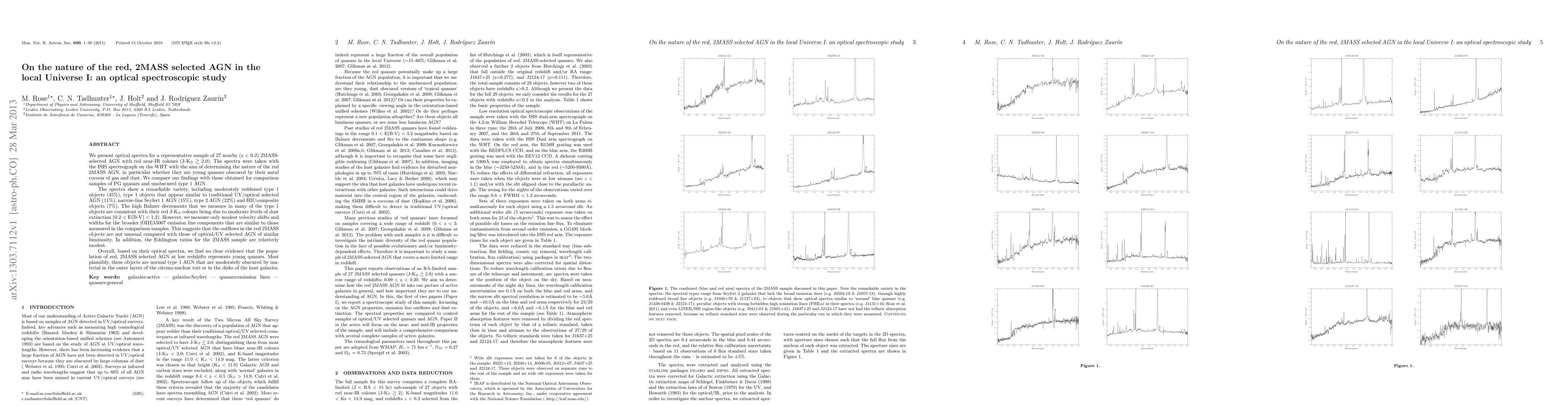 We present optical spectra for a representative sample of 27 nearby (z < 0.2) 2MASS-selected AGN with red near-IR colours (J-K 2.0). The spectra were taken with the ISIS spectrograph on the WHT with the aim of determining the nature of the red 2MASS AGN, in particular whether they are young quasars obscured by their natal cocoon of gas and dust. We compare our findings with those obtained for comparison samples of PG quasars and unobscured type 1 AGN. The spectra show a remarkable variety, including moderately reddened type 1 objects (45%), type 1 objects that appear similar to traditional UV/optical selected AGN (11%), narrow-line Seyfert 1 AGN (15%), type 2 AGN (22%) and HII/composite objects (7%). The high Balmer decrements that we measure in many of the type 1 objects are consistent with their red J-KS colours being due to moderate levels of dust extinction (0.2 < E(B-V) < 1.2). However, we measure only modest velocity shifts and widths for the broader [OIII]{\lambda}5007 emission line components that are similar to those measured in the comparison samples. This suggests that the outflows in the red 2MASS objects are not unusual compared with those of optical/UV selected AGN of similar luminosity. In addition, the Eddington ratios for the 2MASS sample are relatively modest. Overall, based on their optical spectra, we find no clear evidence that the population of red, 2MASS selected AGN at low redshifts represents young quasars. Most plausibly, these objects are normal type 1 AGN that are moderately obscured by material in the outer layers of the circum-nuclear tori or in the disks of the host galaxies.