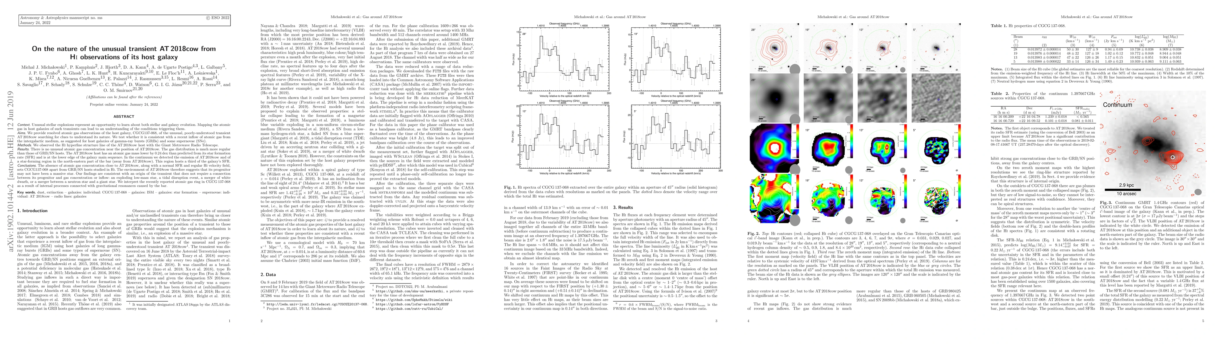 This paper investigates the nature of the unusual transient AT2018cow through HI observations of its host galaxy, CGCG137-068. The study finds no unusual atomic gas concentration near AT2018cow, suggesting its progenitor may not have been a massive star, and supports an origin not tied to gas concentration or inflow.