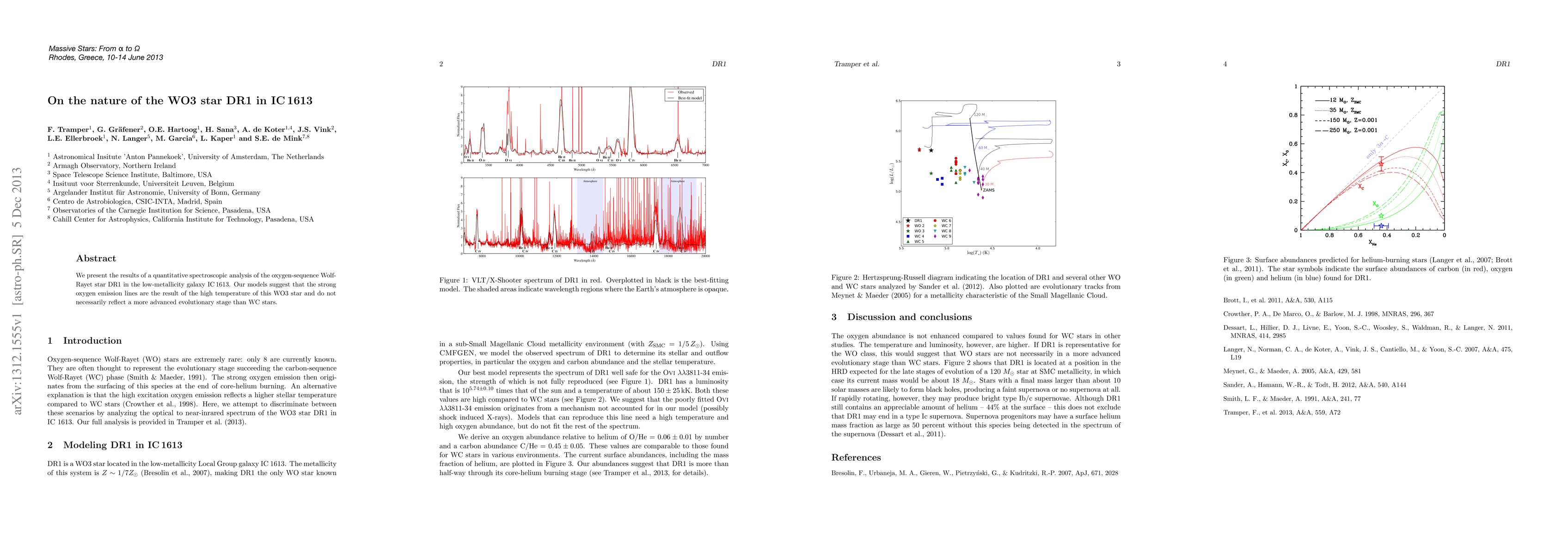 This study analyzes the spectroscopic characteristics of the WO3 Wolf-Rayet star DR1 in IC 1613, concluding that its strong oxygen emission lines are due to its high temperature rather than indicating a more advanced evolutionary stage compared to WC stars.
