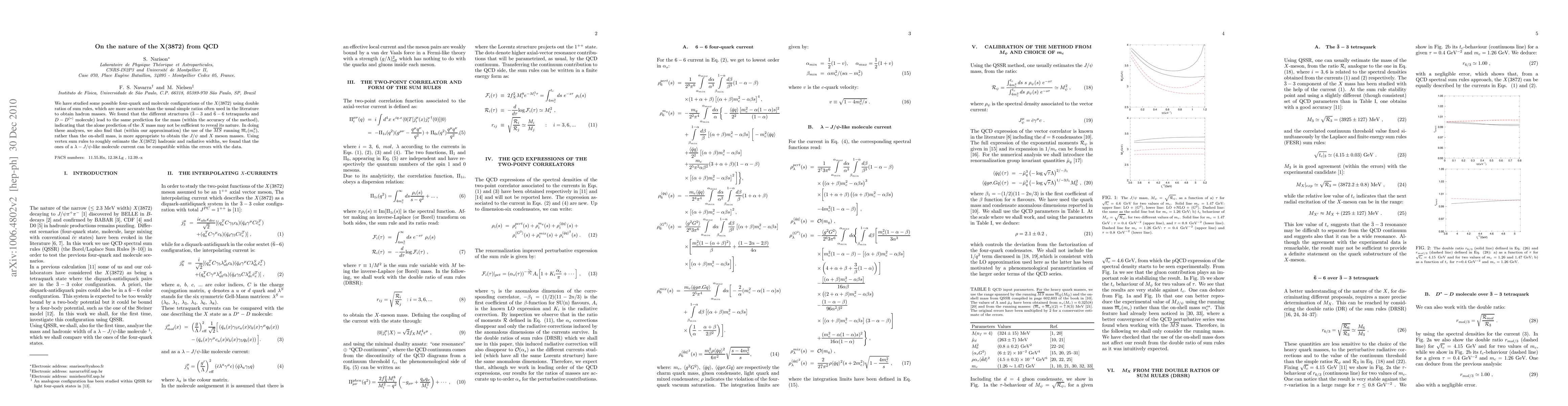 This paper investigates the nature of the X(3872) particle using improved sum rules, finding that various four-quark and molecule configurations predict similar masses, suggesting the mass alone cannot determine its nature. It also recommends the use of the \bar{MS} running charm mass for better mass predictions.