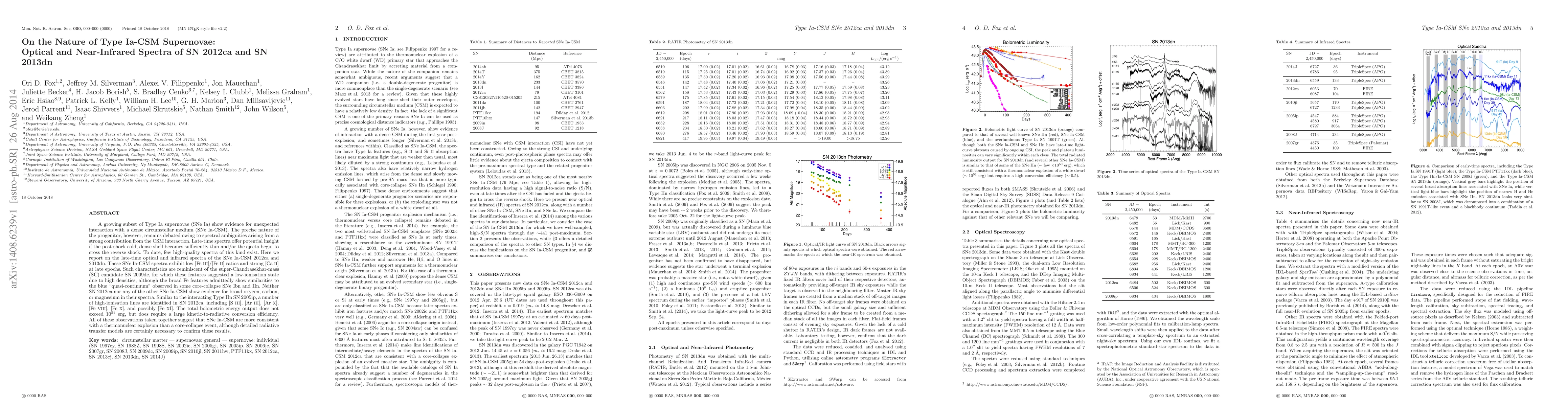 This paper analyzes late-time optical and near-infrared spectra of Type Ia-CSM supernovae SN 2012ca and SN 2013dn, revealing low [Fe III]/[Fe II] ratios and strong [Ca II] indicative of high densities and low ionization states. These features suggest a thermonuclear explosion origin rather than a core-collapse event, though detailed models are required for confirmation.