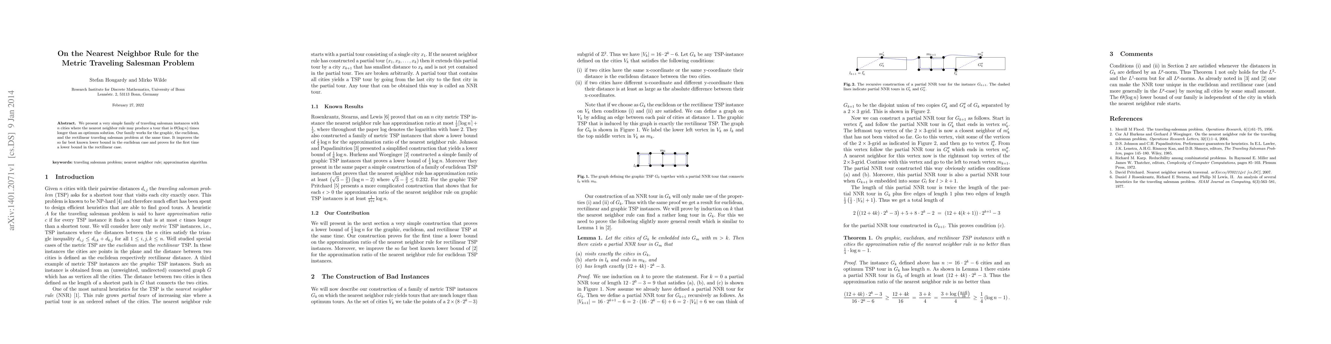 We present a very simple family of traveling salesman instances with $n$ cities where the nearest neighbor rule may produce a tour that is $\Theta(\log n)$ times longer than an optimum solution. Our family works for the graphic, the euclidean, and the rectilinear traveling salesman problem at the same time. It improves the so far best known lower bound in the euclidean case and proves for the first time a lower bound in the rectilinear case.