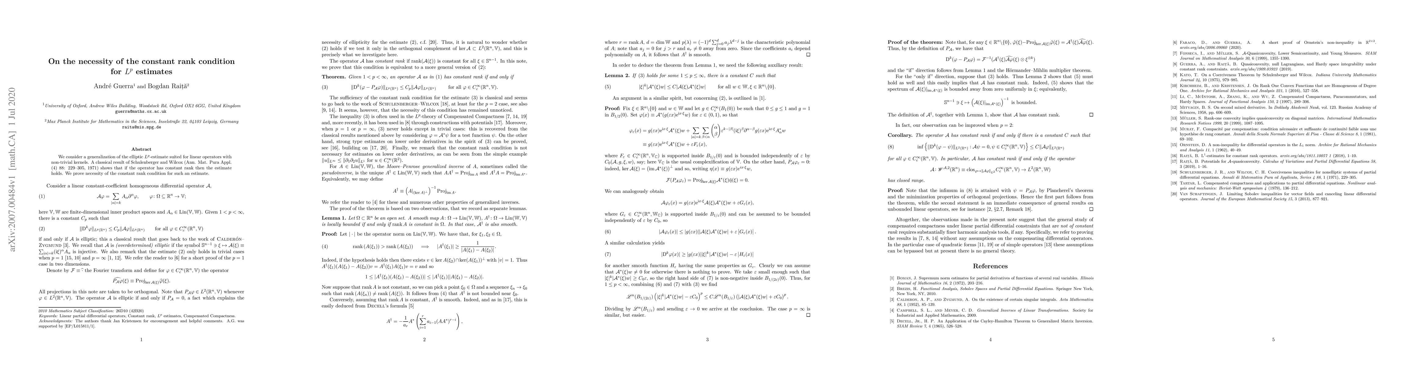 We consider a generalization of the elliptic $L^p$-estimate suited for linear operators with non-trivial kernels. A classical result of Schulenberger and Wilcox (Ann. Mat. Pura Appl. (4) 88: 229-305, 1971) shows that if the operator has constant rank then the estimate holds. We prove necessity of the constant rank condition for such an estimate.