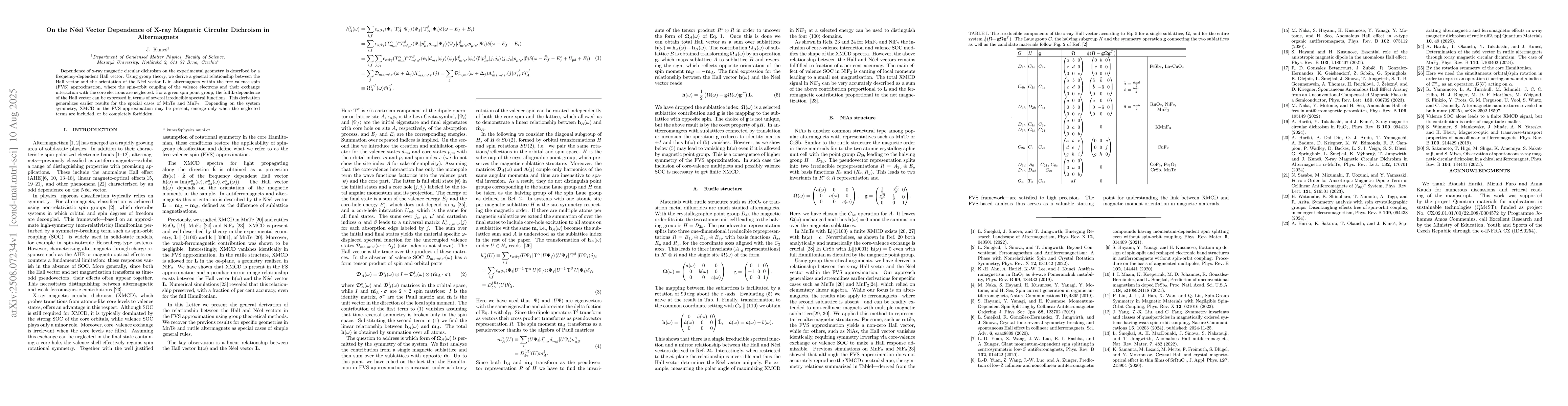 Dependence of x-ray magnetic circular dichroism on the experimental geometry is described by a frequency-dependent Hall vector. Using group theory, we derive a general relationship between the Hall vector and the orientation of the N\'eel vector $\bL$ in altermagnets within the free valence spin (FVS) approximation, where the spin-orbit coupling of the valence electrons and their exchange interaction with the core electrons are neglected. For a given spin point group, the full $\bL$-dependence of the Hall vector can be expressed in terms of several irreducible spectral functions. This derivation generalizes earlier results for the special cases of MnTe and MnF$_2$. Depending on the system symmetry, XMCD in the FVS approximation may be present, emerge only when the neglected terms are included, or be completely forbidden.