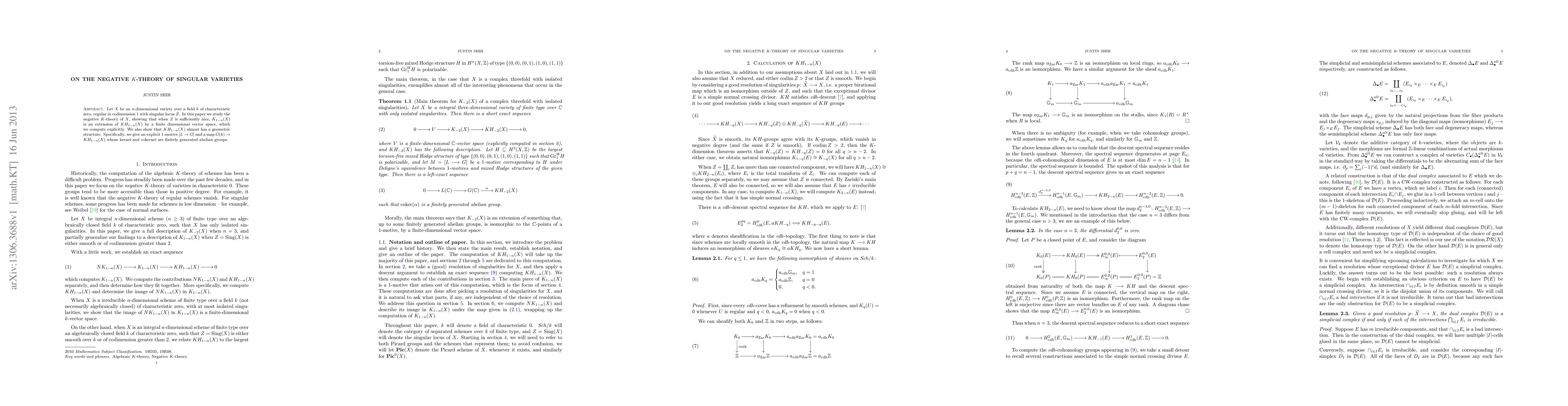 This paper investigates the negative $K$-theory of $n$-dimensional varieties $X$ over a field $k$ with regular codimension 1, revealing that $K_{1-n}(X)$ is an extension of $KH_{1-n}(X)$ by a finite-dimensional vector space when singularities $Z$ are suitably nice. It also demonstrates that $KH_{1-n}(X)$ nearly possesses a geometric structure through an explicit 1-motive and associated map.