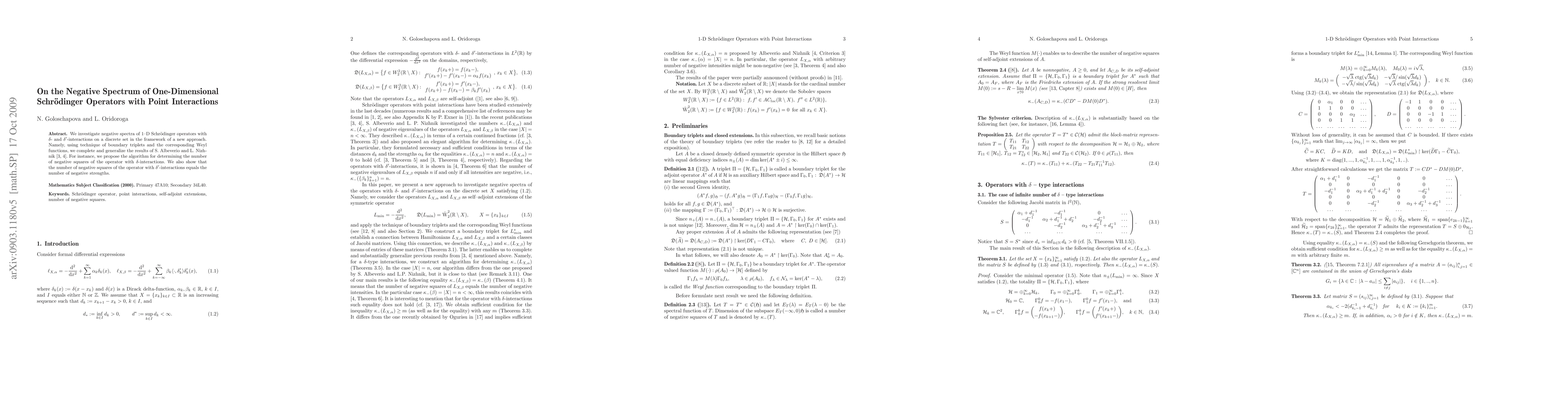 This paper investigates negative spectra of 1D Schr"odinger operators with point interactions using a new approach that involves boundary triplets and Weyl functions, proposing algorithms for determining the number of negative squares of such operators.