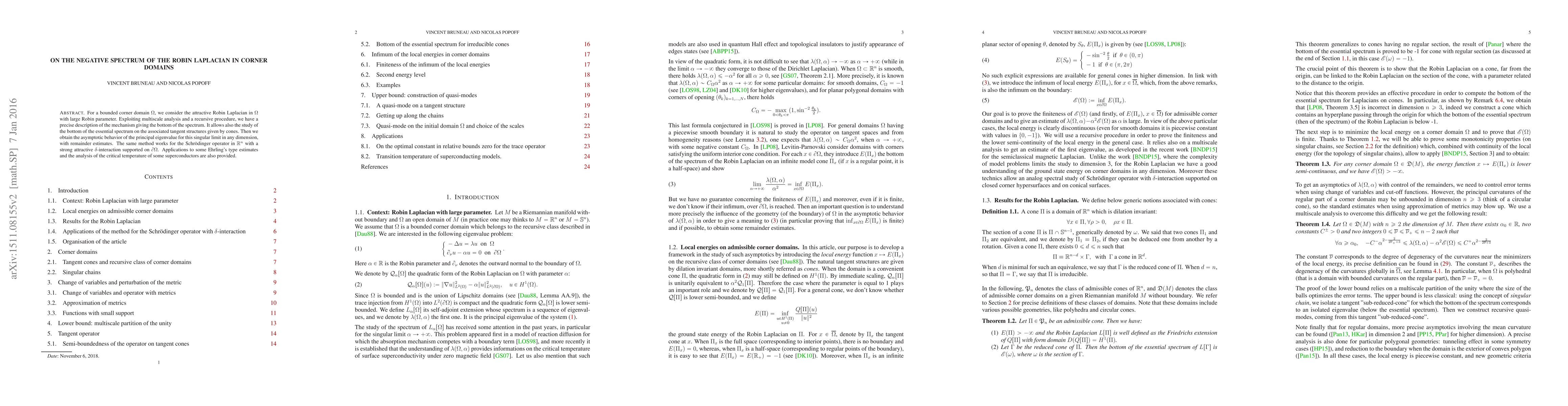 This paper provides a detailed analysis of the negative spectrum of the Robin Laplacian in corner domains, using multiscale analysis and recursive procedures to determine the ground state and the bottom of the essential spectrum. It also explores the asymptotic behavior of the principal eigenvalue in the singular limit, with applications to Schrödinger operators and superconductors.