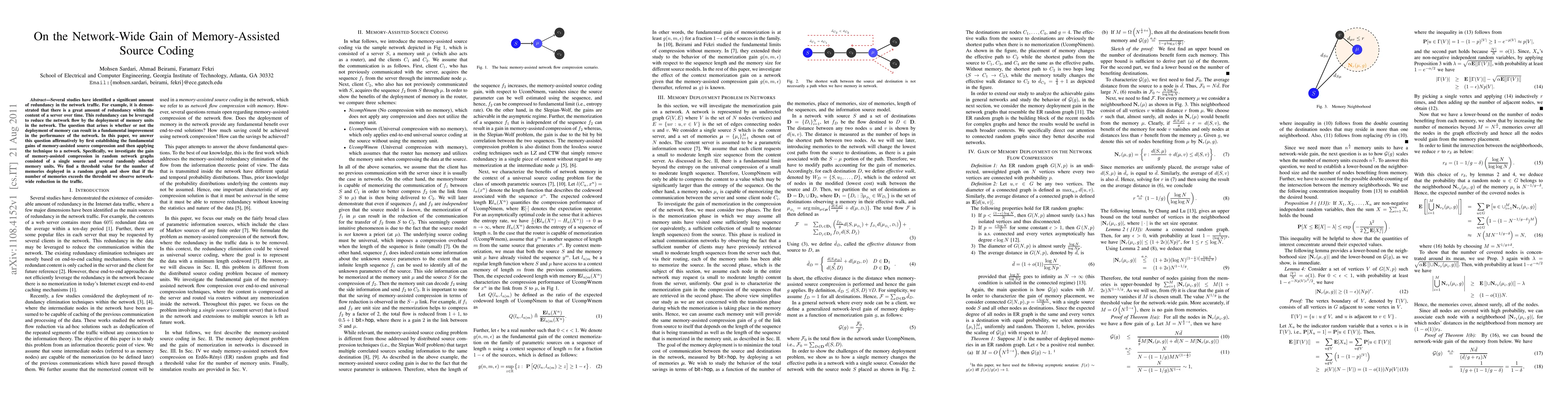 Several studies have identified a significant amount of redundancy in the network traffic. For example, it is demonstrated that there is a great amount of redundancy within the content of a server over time. This redundancy can be leveraged to reduce the network flow by the deployment of memory units in the network. The question that arises is whether or not the deployment of memory can result in a fundamental improvement in the performance of the network. In this paper, we answer this question affirmatively by first establishing the fundamental gains of memory-assisted source compression and then applying the technique to a network. Specifically, we investigate the gain of memory-assisted compression in random network graphs consisted of a single source and several randomly selected memory units. We find a threshold value for the number of memories deployed in a random graph and show that if the number of memories exceeds the threshold we observe network-wide reduction in the traffic.