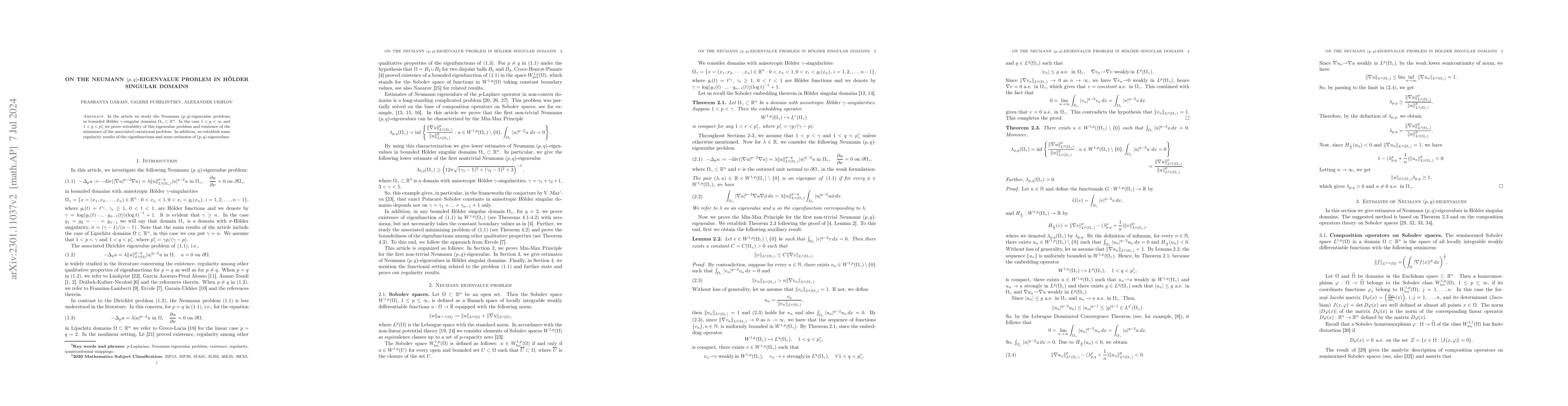 In the article we study the Neumann $(p,q)$-eigenvalue problems in bounded H\"older $\gamma$-singular domains $\Omega_{\gamma}\subset \mathbb{R}^n$. In the case $1