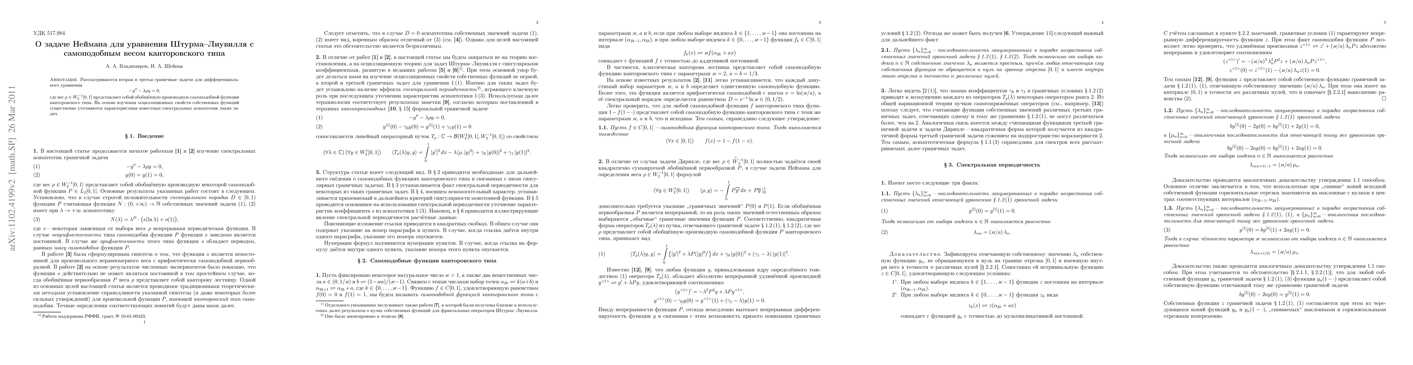 Researchers studied the Neumann problem for a Sturm-Liouville equation with a self-similar Cantor type weight, focusing on the oscillating properties of eigenfunctions under different boundary conditions. They found that the spectral asymptotics lead to a non-constant function s.
