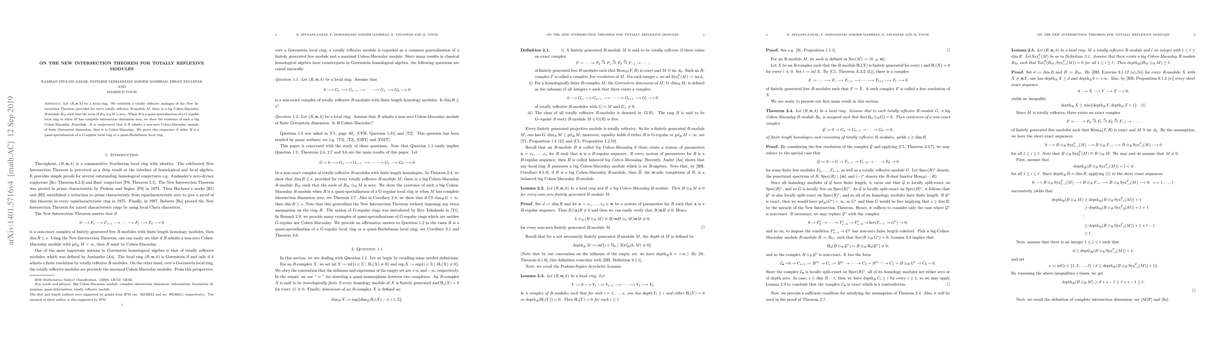 Researchers establish a new intersection theorem for totally reflexive modules over local rings, linking it to Cohen-Macaulay modules with certain properties.
