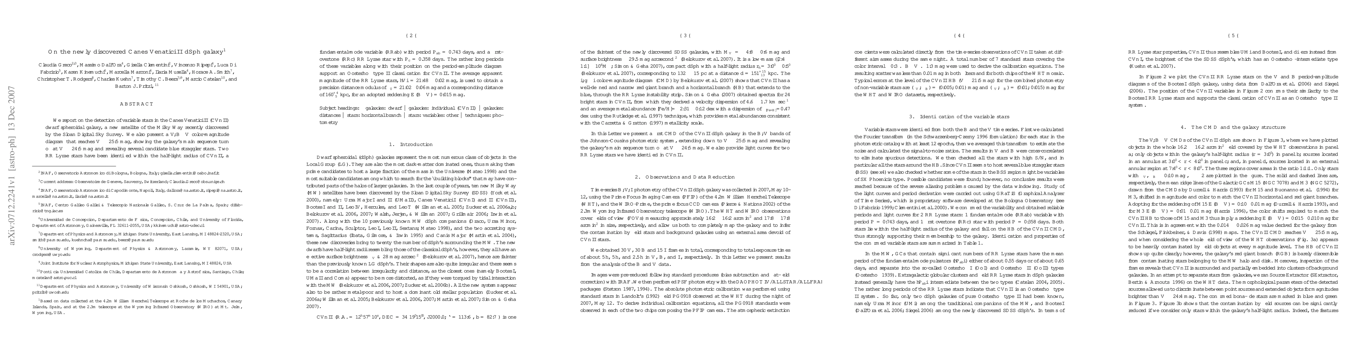 The Canes Venatici II (CVn II) dwarf spheroidal galaxy, a newly discovered Milky Way satellite, hosts variable stars including two RR Lyrae stars, supporting an Oosterhoff type II classification. The distance to CVn II is estimated at 160 kpc using the RR Lyrae stars' average magnitude.