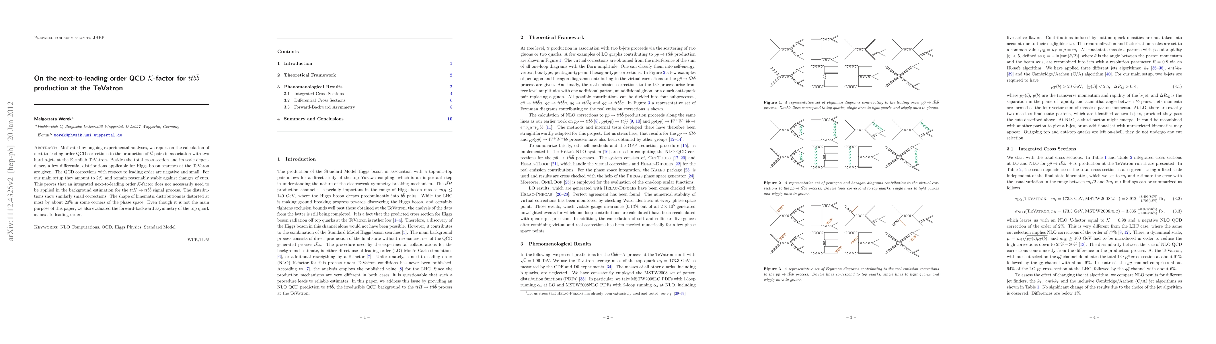 This paper calculates next-to-leading order QCD corrections for top anti-top pair production with two b-jets at the TeVatron, finding small negative corrections (around 2%) that remain stable against cuts. The study concludes that these corrections do not necessitate an integrated K-factor for background estimation in Higgs boson searches.