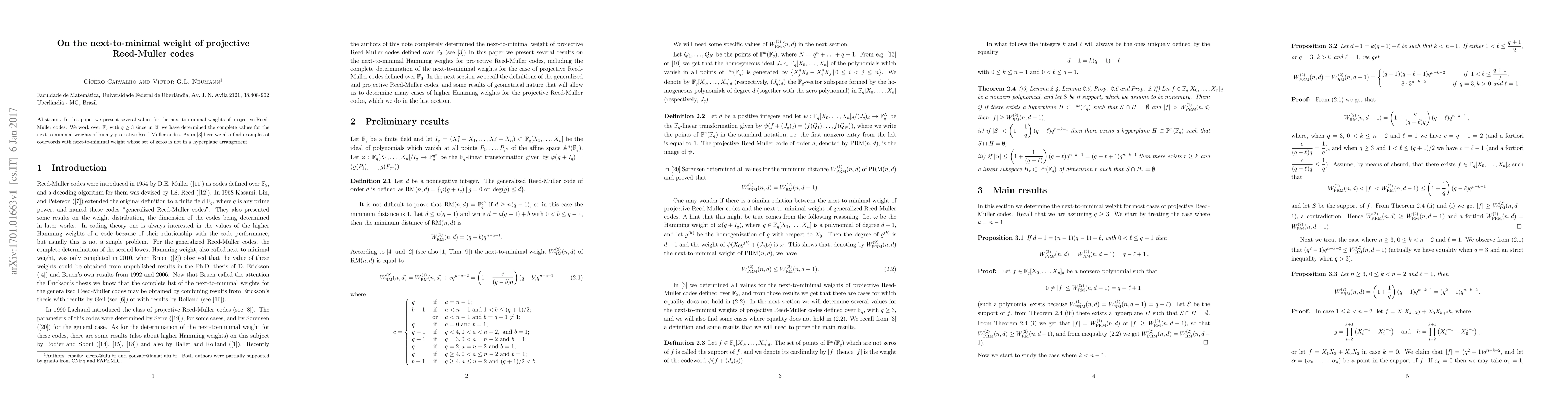 This paper determines several values for the next-to-minimal weights of projective Reed-Muller codes over fields $\mathbb{F}_q$ with $q \geq 3$, extending previous results on binary codes, and includes examples of codewords with next-to-minimal weight not confined to hyperplane arrangements.