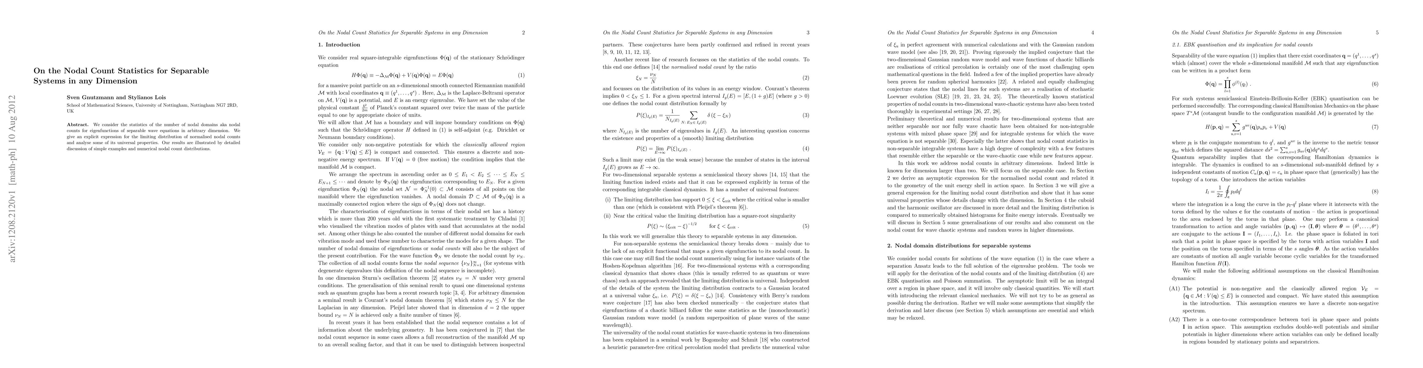 This paper provides an explicit expression for the limiting distribution of normalized nodal counts for eigenfunctions of separable wave equations in any dimension, analyzing their universal properties and illustrating findings with examples and numerical data.