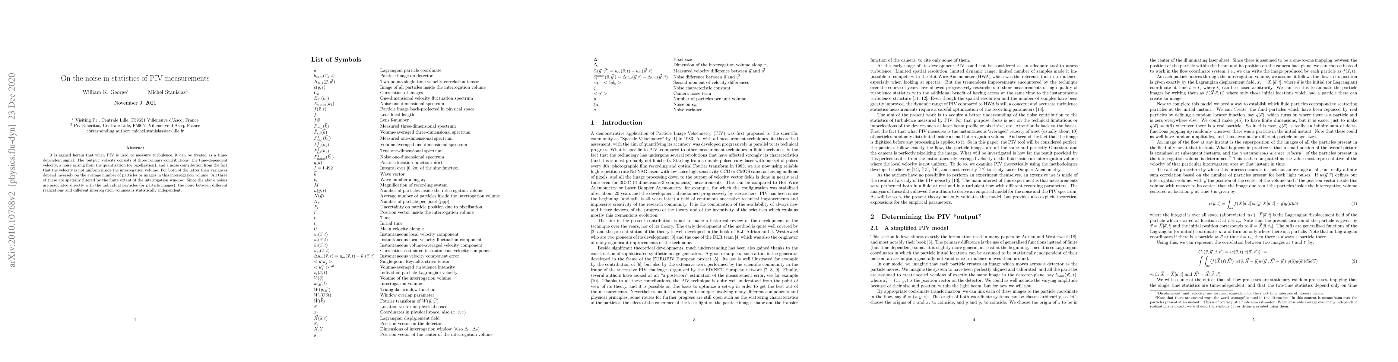 This paper discusses the statistical noise inherent in Particle Image Velocimetry (PIV) measurements of turbulence, identifying three main sources: time-dependent velocity, quantization noise, and non-uniform velocity noise within the interrogation volume. The variance of the latter two types of noise decreases with an increased number of particles or images in the interrogation volume.