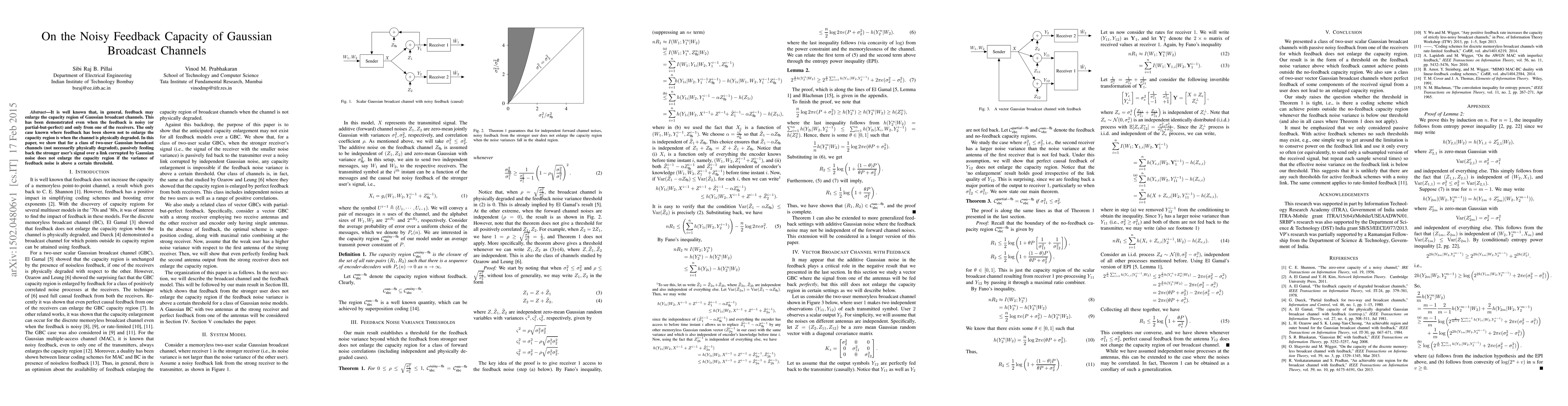 This paper explores the impact of noisy feedback on the capacity region of Gaussian broadcast channels, demonstrating that when feedback noise exceeds a specific threshold, it does not enhance capacity, even for non-degraded channels. The study focuses on two-user scenarios where feedback is from the stronger user and corrupted by Gaussian noise.