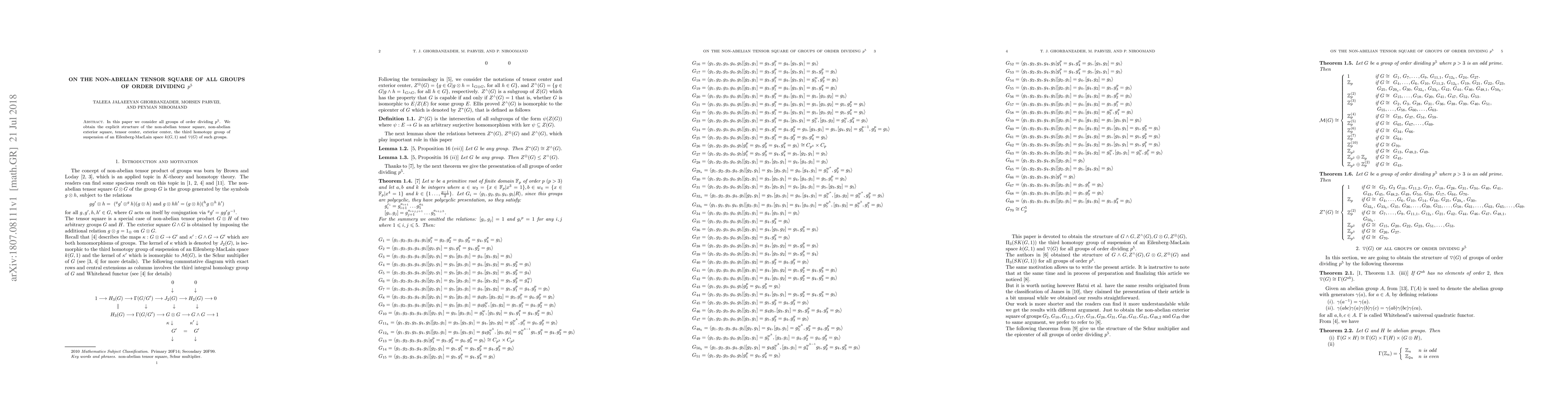 This paper investigates groups of order dividing $p^5$, detailing the explicit structure of their non-abelian tensor square, non-abelian exterior square, tensor center, exterior center, third homotopy group, and $\triangledown(G)$. It provides a comprehensive analysis of these algebraic and topological properties.