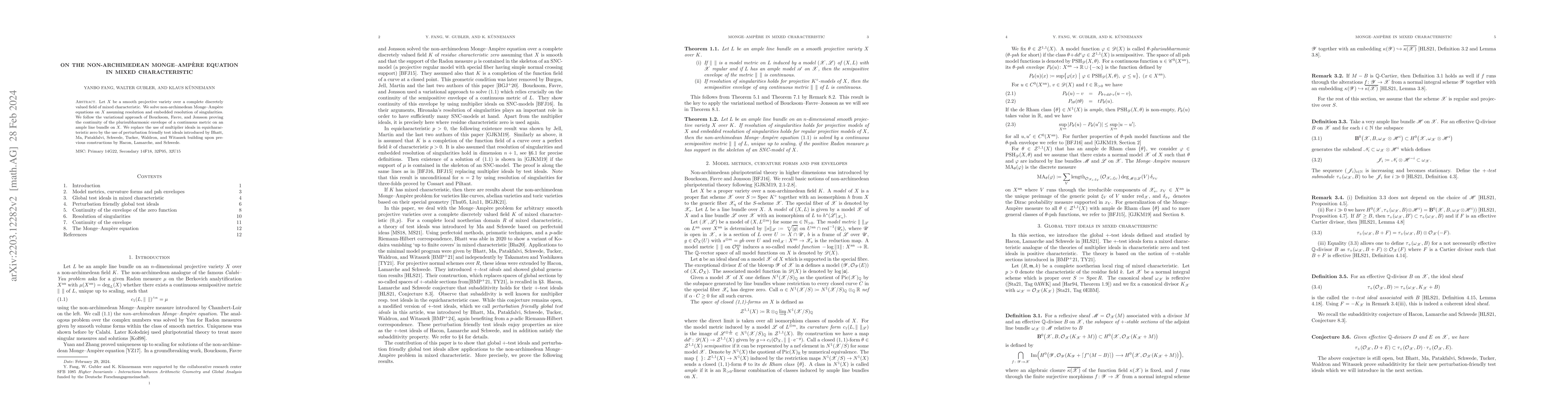 This paper solves non-archimedean Monge-Ampère equations on smooth projective varieties over mixed characteristic fields, leveraging a variational approach and employing test ideals instead of multiplier ideals for resolution of singularities.