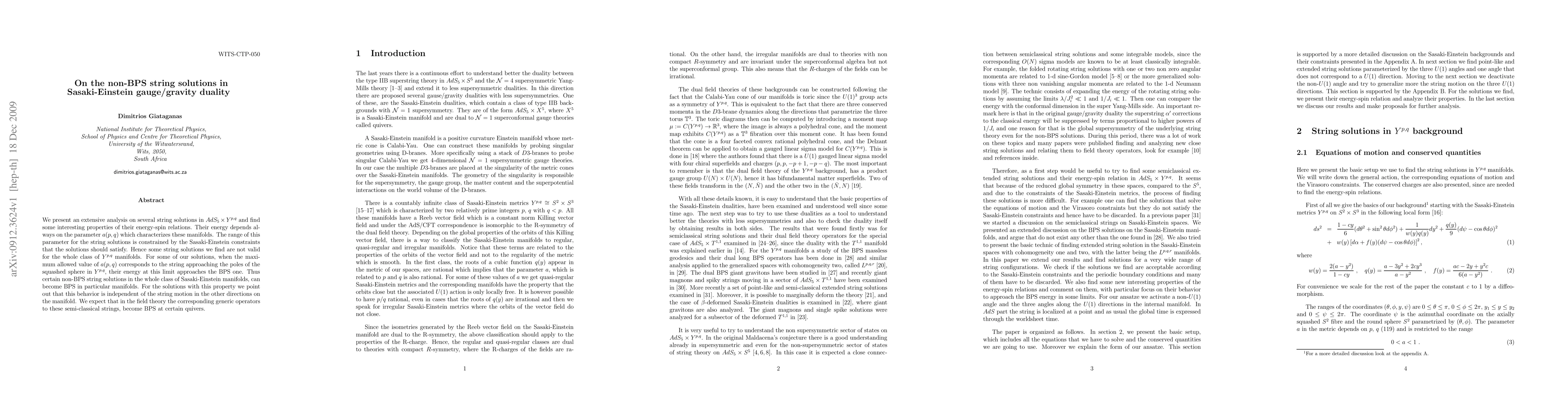 This paper investigates non-BPS string solutions in AdS_5 x Ypq manifolds, revealing that their energy-spin relations depend on the parameter a(p,q). Some non-BPS strings become BPS when approaching the poles of the squashed sphere, indicating a transition dependent on specific manifold properties.