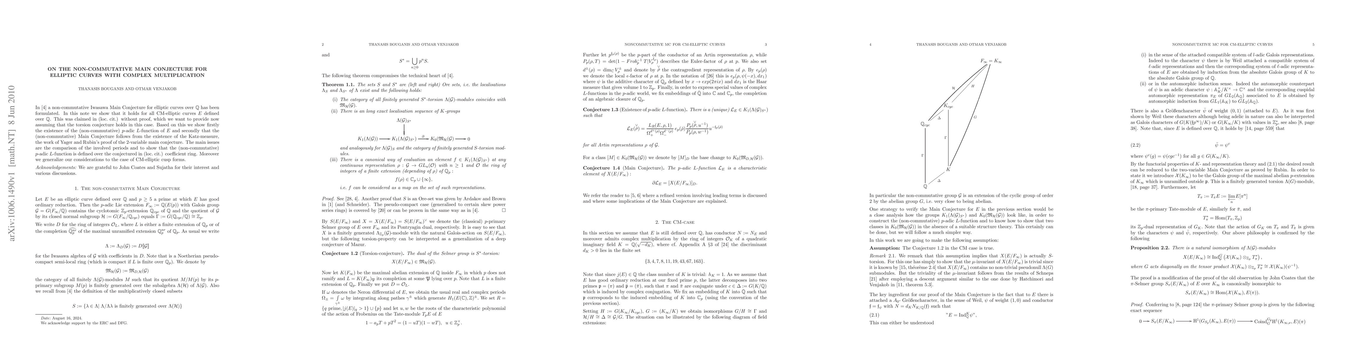 In arXiv:math/0404297 a non-commutative Iwasawa Main Conjecture for elliptic curves over $\mathbb{Q}$ has been formulated. In this note we show that it holds for all CM-elliptic curves $E$ defined over $\mathbb{Q}$. This was claimed in (loc.\ cit.) without proof, which we want to provide now assuming that the torsion conjecture holds in this case. Based on this we show firstly the existence of the (non-commutative) $p$-adic $L$-function of $E$ and secondly that the (non-commutative) Main Conjecture follows from the existence of the Katz-measure, the work of Yager and Rubin's proof of the 2-variable main conjecture. The main issues are the comparison of the involved periods and to show that the (non-commutative) $p$-adic $L$-function is defined over the conjectured in (loc.\ cit.) coefficient ring. Moreover we generalize our considerations to the case of CM-elliptic cusp forms.