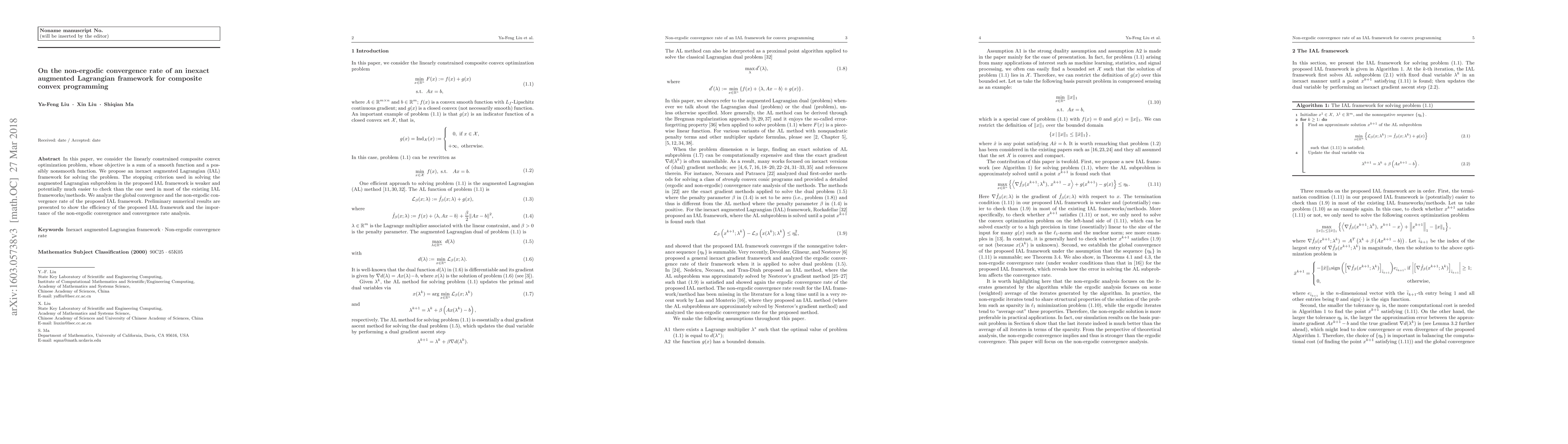 This paper proposes an inexact augmented Lagrangian (IAL) framework for solving linearly constrained composite convex optimization problems. It analyzes the global convergence and non-ergodic convergence rate of the IAL framework, which uses a simpler stopping criterion compared to existing methods.