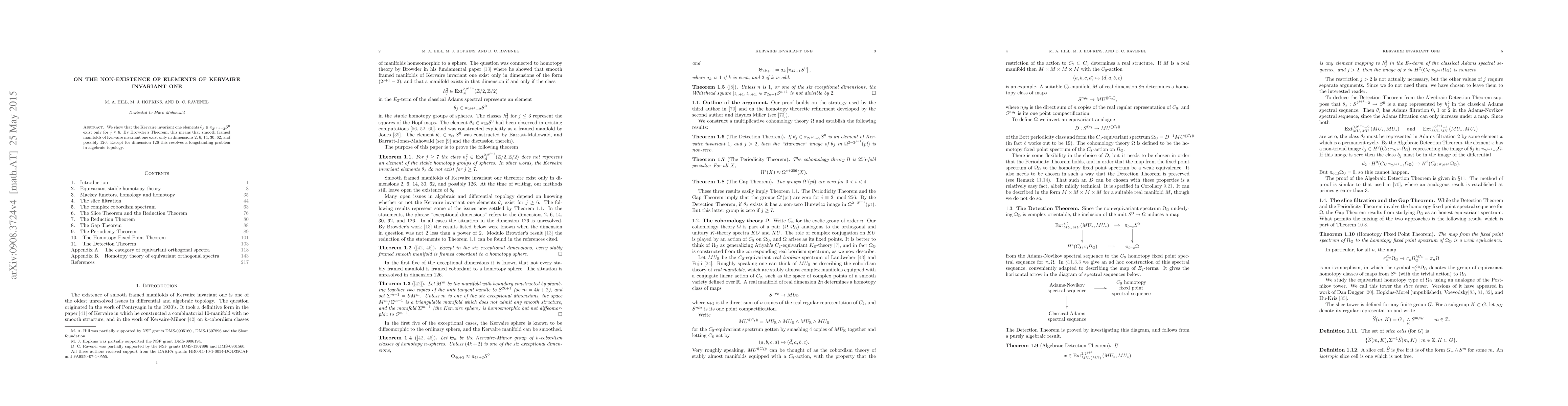 This paper demonstrates that Kervaire invariant one elements in homotopy groups of spheres are nonexistent beyond dimension 126, confirming their existence only in specific dimensions and resolving a longstanding issue in algebraic topology, except for the dimension 126.