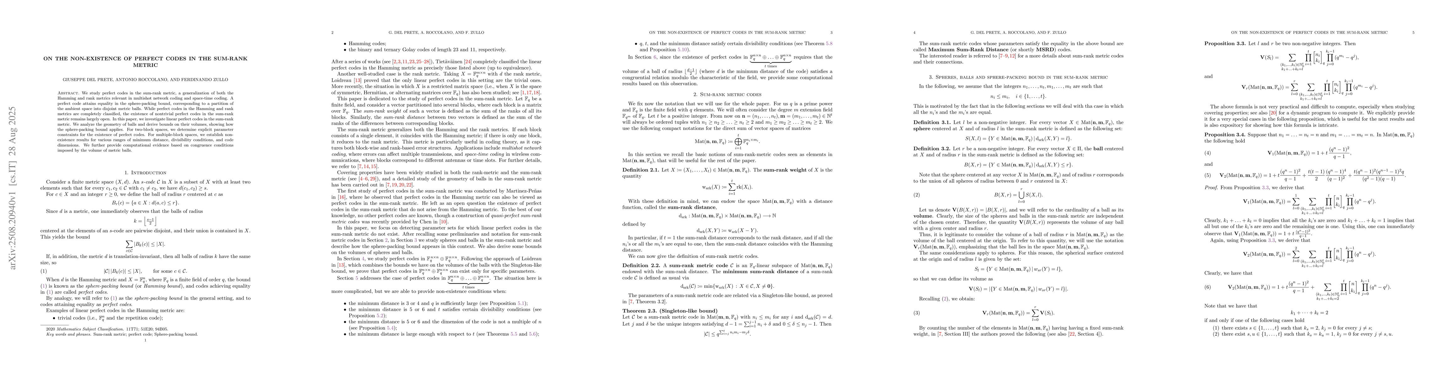 We study perfect codes in the sum-rank metric, a generalization of both the Hamming and rank metrics relevant in multishot network coding and space-time coding. A perfect code attains equality in the sphere-packing bound, corresponding to a partition of the ambient space into disjoint metric balls. While perfect codes in the Hamming and rank metrics are completely classified, the existence of nontrivial perfect codes in the sum-rank metric remains largely open. In this paper, we investigate linear perfect codes in the sum-rank metric. We analyze the geometry of balls and derive bounds on their volumes, showing how the sphere-packing bound applies. For two-block spaces, we determine explicit parameter constraints for the existence of perfect codes. For multiple-block spaces, we establish non-existence results for various ranges of minimum distance, divisibility conditions, and code dimensions. We further provide computational evidence based on congruence conditions imposed by the volume of metric balls.