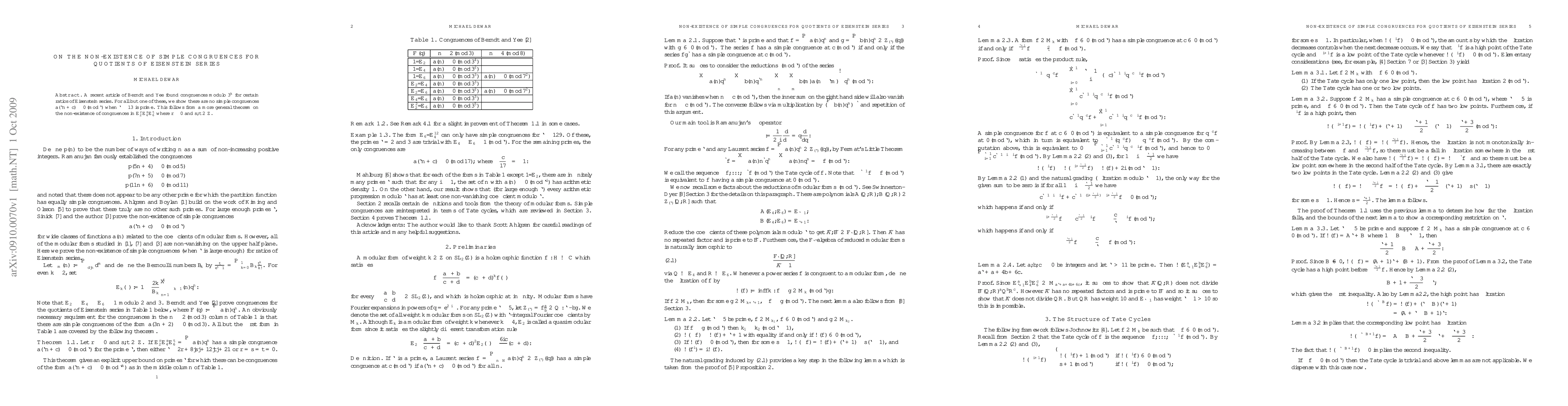 This paper demonstrates that for most ratios of Eisenstein series ratios found by Berndt and Yee, there are no simple congruences of the form a(pn+c) = 0 modulo p when p is a prime greater than or equal to 13. This conclusion is derived from a broader theorem proving the non-existence of congruences in expressions involving Eisenstein series of weights 2, 4, and 6.