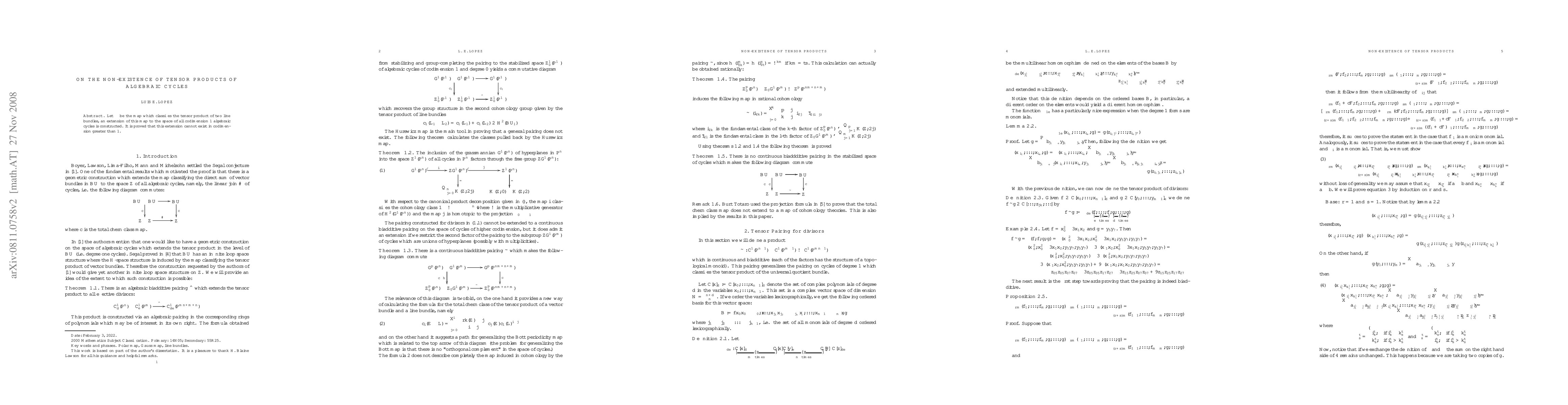 Let $\otimes$ be the map which classifies the tensor product of two line bundles, an extension of this map to the space of all codimension 1 algebraic cycles is constructed. It is proved that this extension cannot exist in codimension greater than 1.