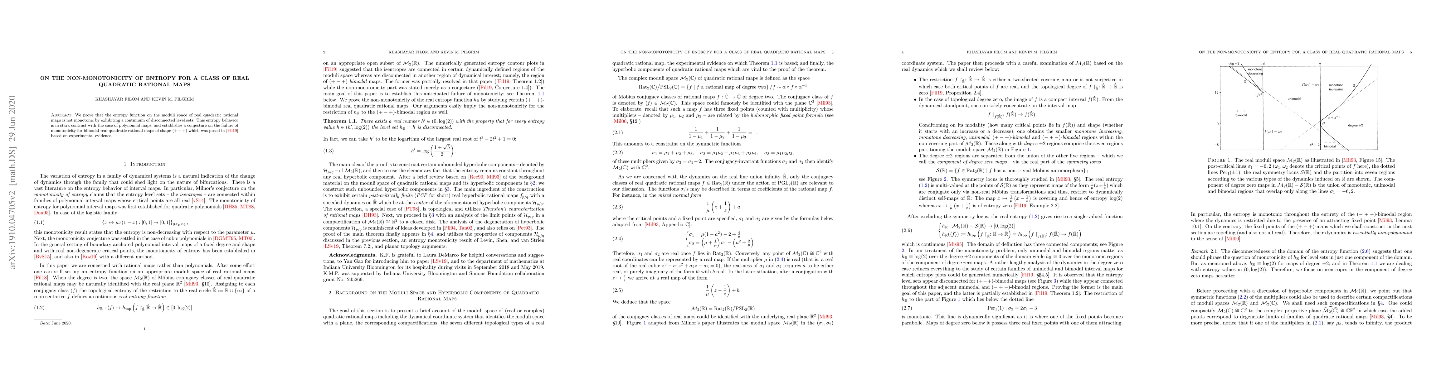 We prove that the entropy function on the moduli space of real quadratic rational maps is not monotonic by exhibiting a continuum of disconnected level sets. This entropy behavior is in stark contrast with the case of polynomial maps, and establishes a conjecture on the failure of monotonicity for bimodal real quadratic rational maps of shape $(+-+)$ which was posed in arXiv:1901.03458 based on experimental evidence.