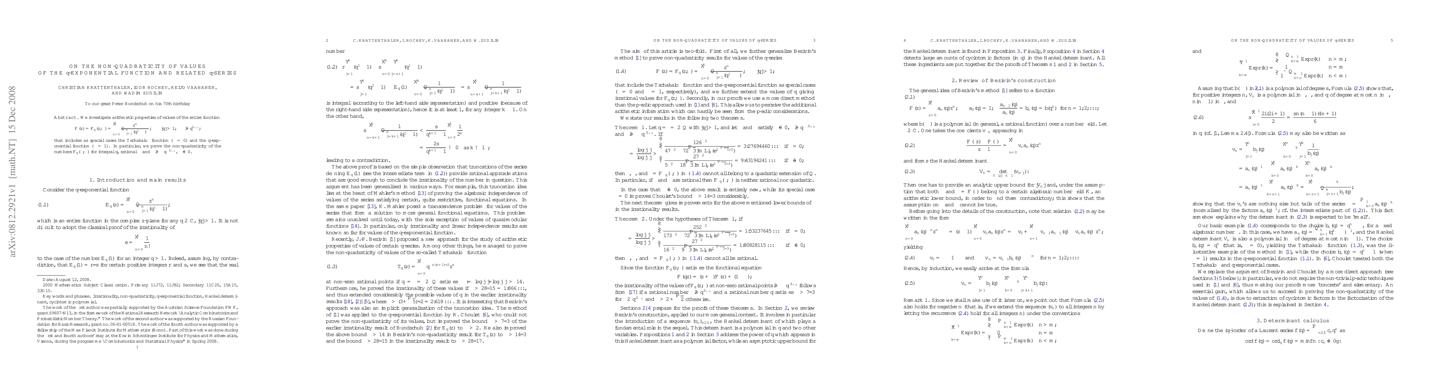 We investigate arithmetic properties of values of the entire function $$ F(z)=F_q(z;\lambda)=\sum_{n=0}^\infty\frac{z^n}{\prod_{j=1}^n(q^j-\lambda)}, \qquad |q|>1, \quad \lambda\notin q^{\mathbb Z_{>0}}, $$ that includes as special cases the Tschakaloff function ($\lambda=0$) and the $q$-exponential function ($\lambda=1$). In particular, we prove the non-quadraticity of the numbers $F_q(\alpha;\lambda)$ for integral $q$, rational $\lambda$ and $\alpha\notin-\lambda q^{\mathbb Z_{>0}}$, $\alpha\ne0$.