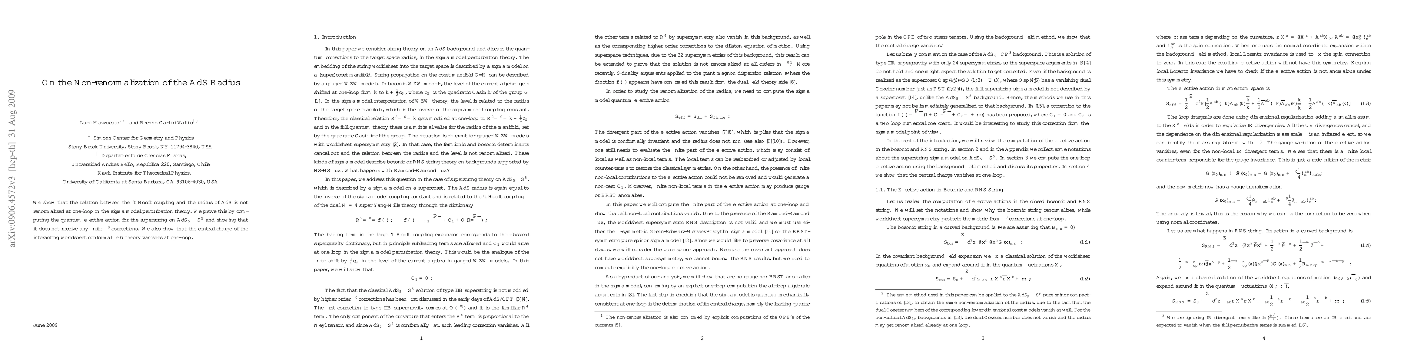 We show that the relation between the 't Hooft coupling and the radius of AdS is not renormalized at one-loop in the sigma model perturbation theory. We prove this by computing the quantum effective action for the superstring on AdS_5 x S^5 and showing that it does not receive any finite alpha' corrections. We also show that the central charge of the interacting worldsheet conformal field theory vanishes at one-loop.