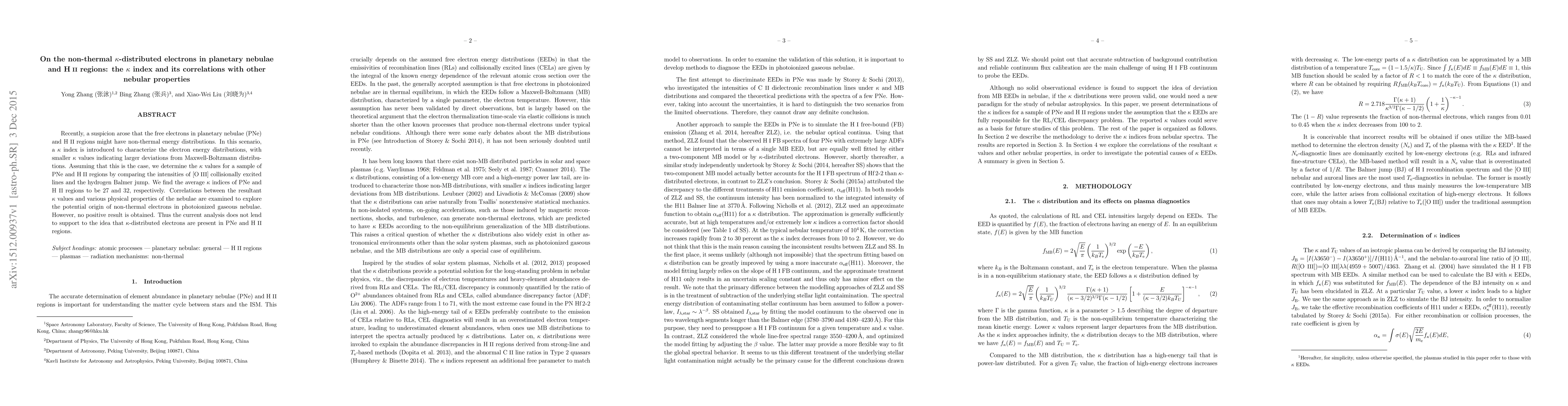 This paper investigates non-thermal kappa-distributed electrons in planetary nebulae and HII regions, finding average kappa indices of 27 and 32, respectively. Despite examining correlations with various nebular properties, no clear evidence supports the presence of non-thermal electrons in these regions.