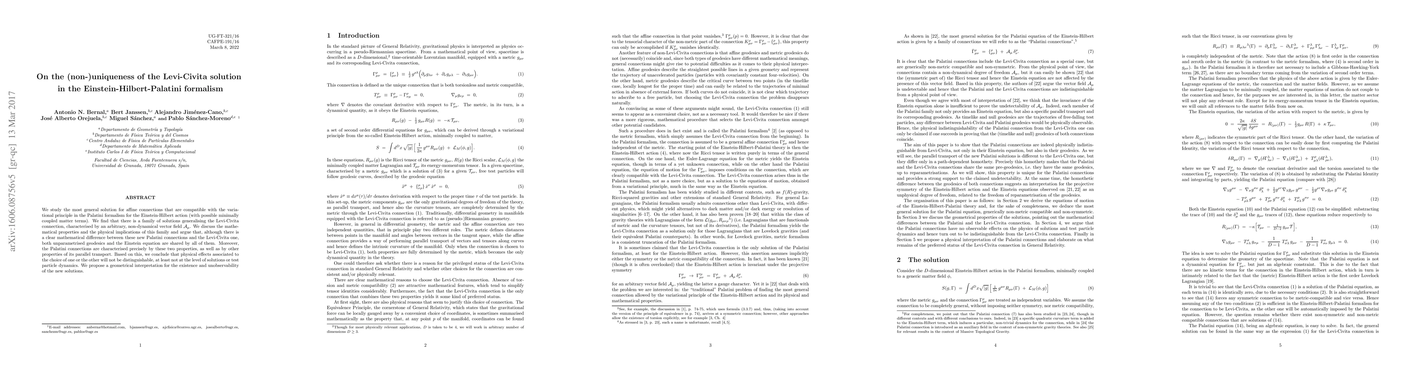 This paper investigates the Einstein-Hilbert-Palatini formalism, revealing a family of affine connections beyond the Levi-Civita connection, characterized by a non-dynamical vector field ${\cal A}_\mu$. Despite mathematical differences, these new connections share geodesics and Einstein equations, implying no distinguishable physical effects.