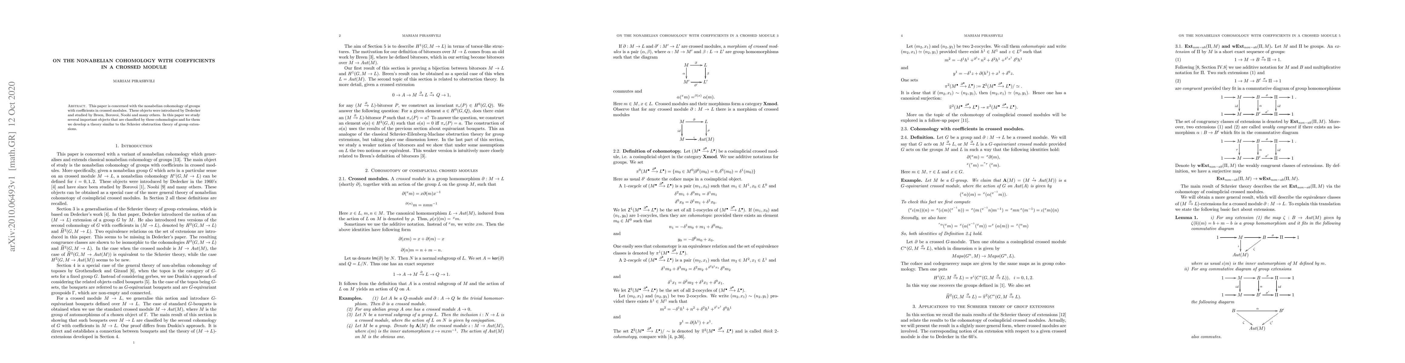 This paper develops a nonabelian cohomology theory for groups with coefficients in crossed modules, extending Schreier obstruction theory to classify important objects, following foundational work by Dedecker, Breen, Borovoi, and Noohi.