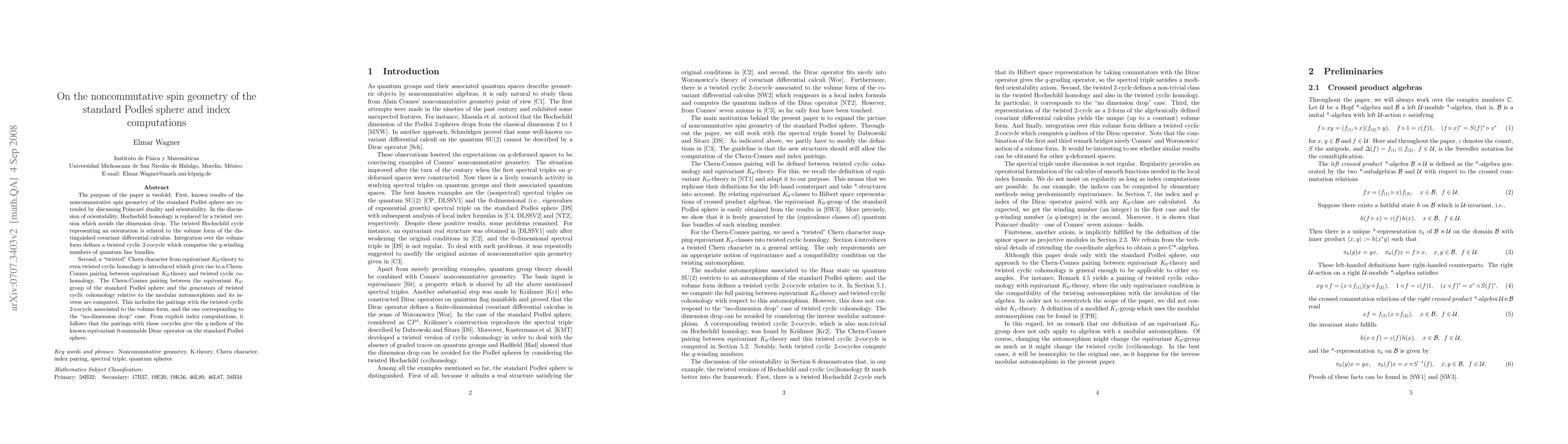 This paper extends noncommutative spin geometry on the standard Podleś sphere by discussing Poincaré duality, orientability, and introducing a twisted version of Hochschild homology. It also introduces a "twisted" Chern character and computes the Chern-Connes pairing, revealing the q-indices of the equivariant 0-summable Dirac operator through explicit index computations.