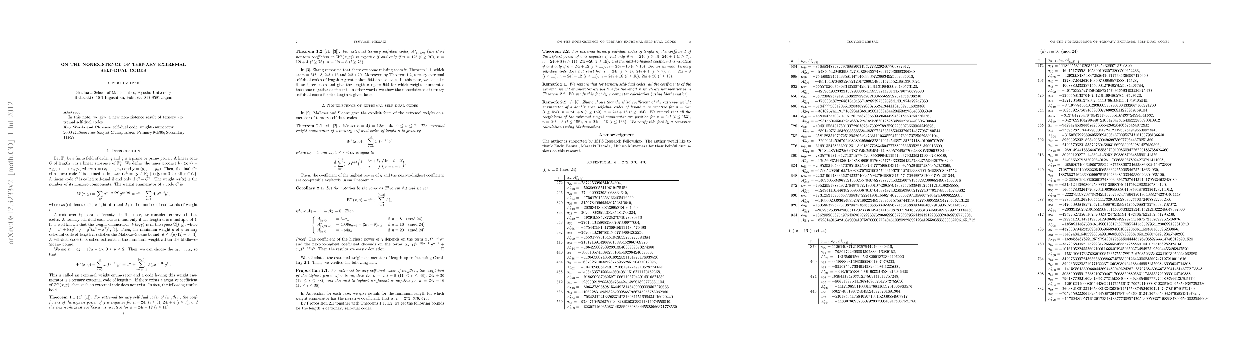This paper establishes a new nonexistence result for ternary extremal self-dual codes, contributing to the understanding of their non-existence in specific cases. The findings provide valuable insights into the structure and properties of self-dual codes in ternary fields.