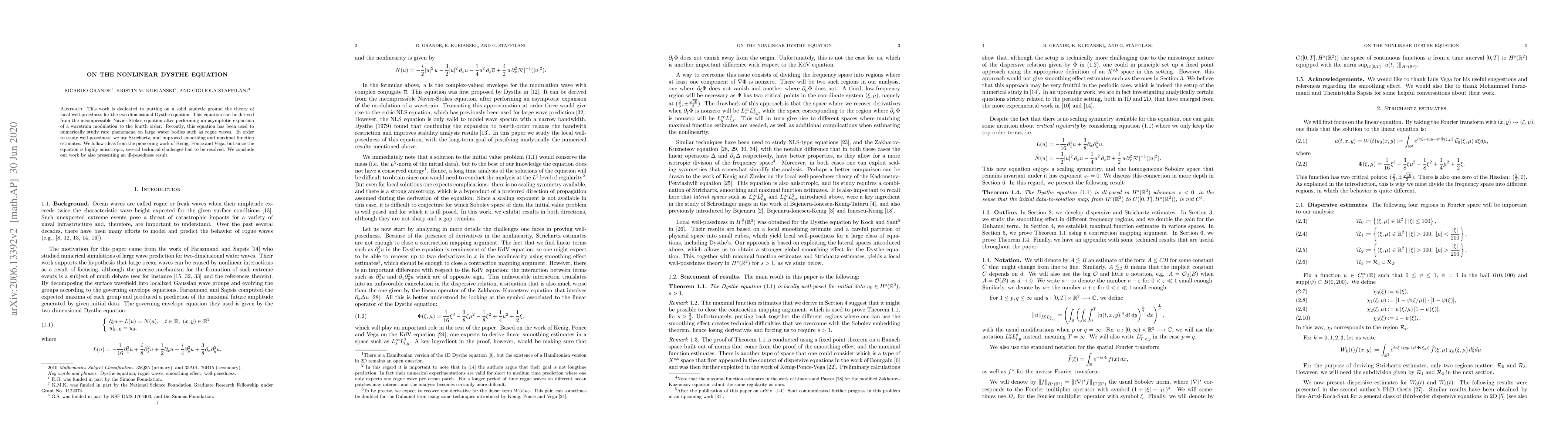 Researchers analyze the nonlinear Dysthe equation to study its well-posedness for rare water phenomena like rogue waves, finding both local solutions and an ill-posedness result.