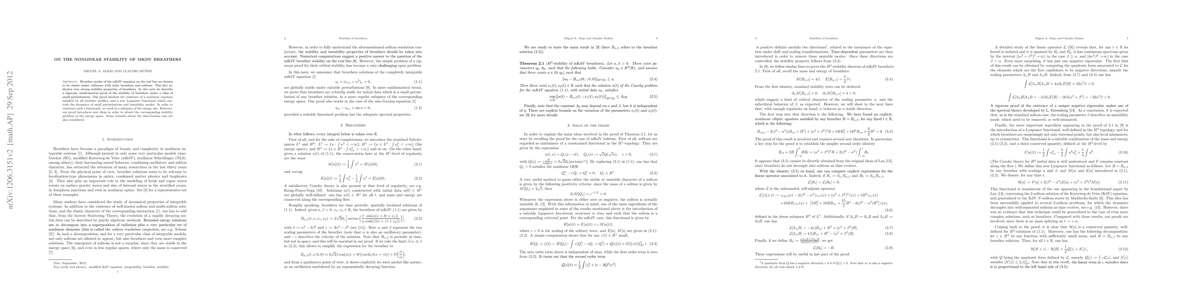 Researchers prove the nonlinear stability of mKdV breathers using a new Lyapunov functional that controls small perturbations and instability modes.