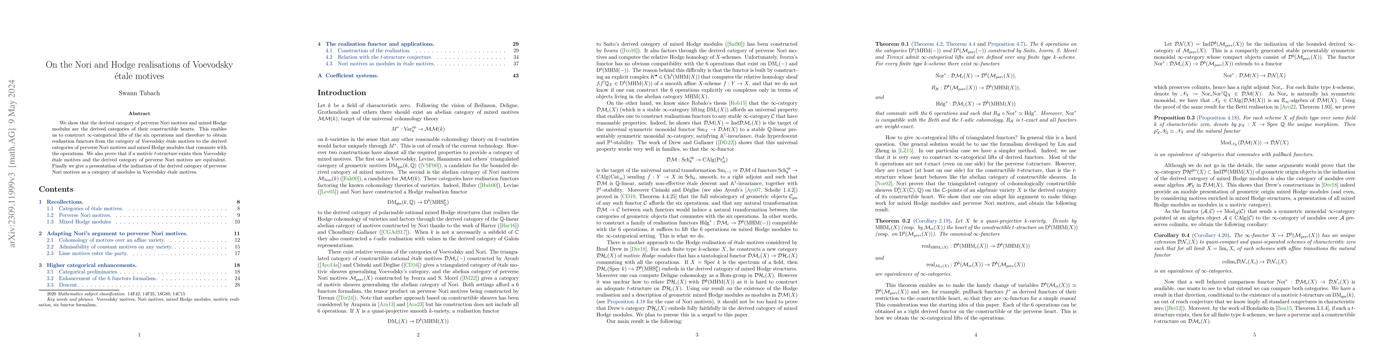 We show that the derived category of perverse Nori motives and mixed Hodge modules are the derived categories of their constructible hearts. This enables us to construct $\infty$-categorical lifts of the six operations and therefore to obtain realisation functors from the category of Voevodsky \'etale motives to the derived categories of perverse Nori motives and mixed Hodge modules that commute with the operations. We give a proof that the realisation induces an equivalence of categories between Artin motives in the category of \'etale motives and Artin motives in the derived category of Nori motives. We also prove that if a motivic $t$-structure exists then Voevodsky \'etale motives and the derived category of perverse Nori motives are equivalent. Finally we give a presentation of the indization of the derived category of perverse Nori motives as a category of modules in Voevodsky \'etale motives that gives a continuity result for perverse Nori motives.
