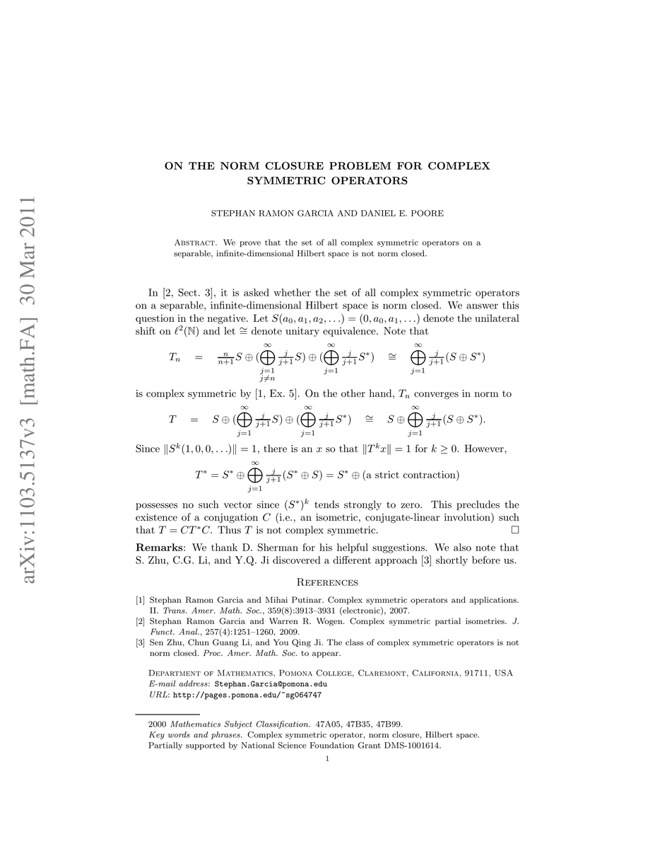 We prove that the set of all complex symmetric operators on a separable, infinite-dimensional Hilbert space is not norm closed.