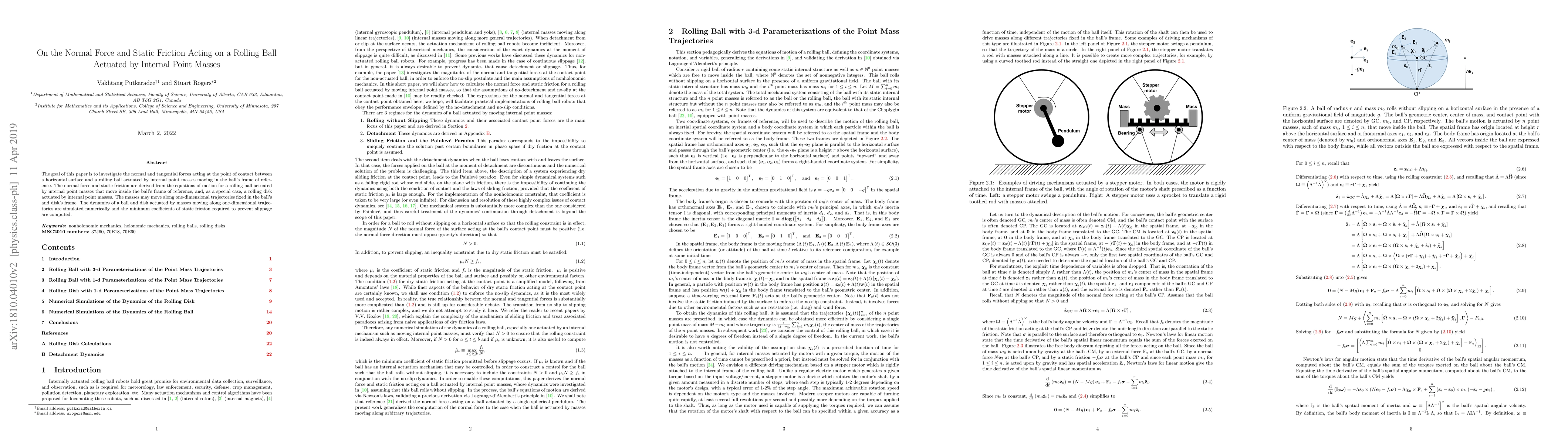 This paper derives the normal force and static friction for a rolling ball with internal point masses, analyzing the forces at the contact point and simulating the dynamics to determine the minimum static friction coefficient needed to prevent slippage.