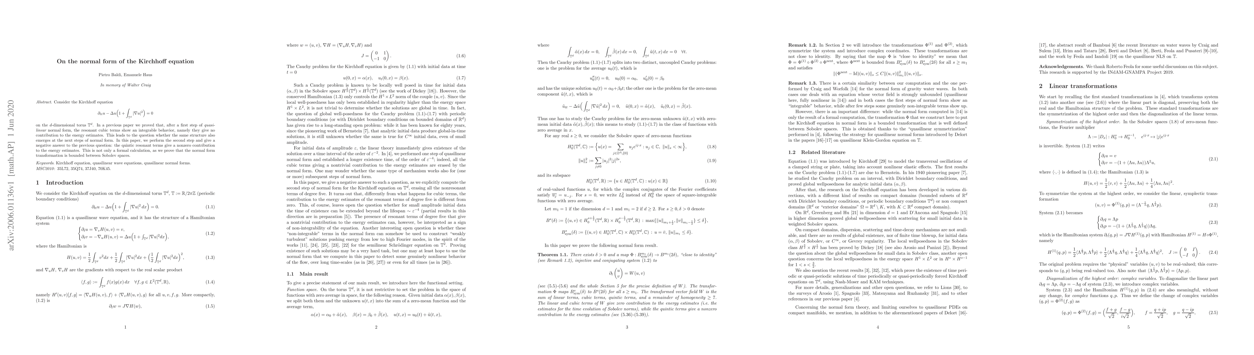Consider the Kirchhoff equation $$ \partial_{tt} u - \Delta u \Big( 1 + \int_{\mathbb{T}^d} |\nabla u|^2 \Big) = 0 $$ on the $d$-dimensional torus $\mathbb{T}^d$. In a previous paper we proved that, after a first step of quasilinear normal form, the resonant cubic terms show an integrable behavior, namely they give no contribution to the energy estimates. This leads to the question whether the same structure also emerges at the next steps of normal form. In this paper, we perform the second step and give a negative answer to the previous question: the quintic resonant terms give a nonzero contribution to the energy estimates. This is not only a formal calculation, as we prove that the normal form transformation is bounded between Sobolev spaces.