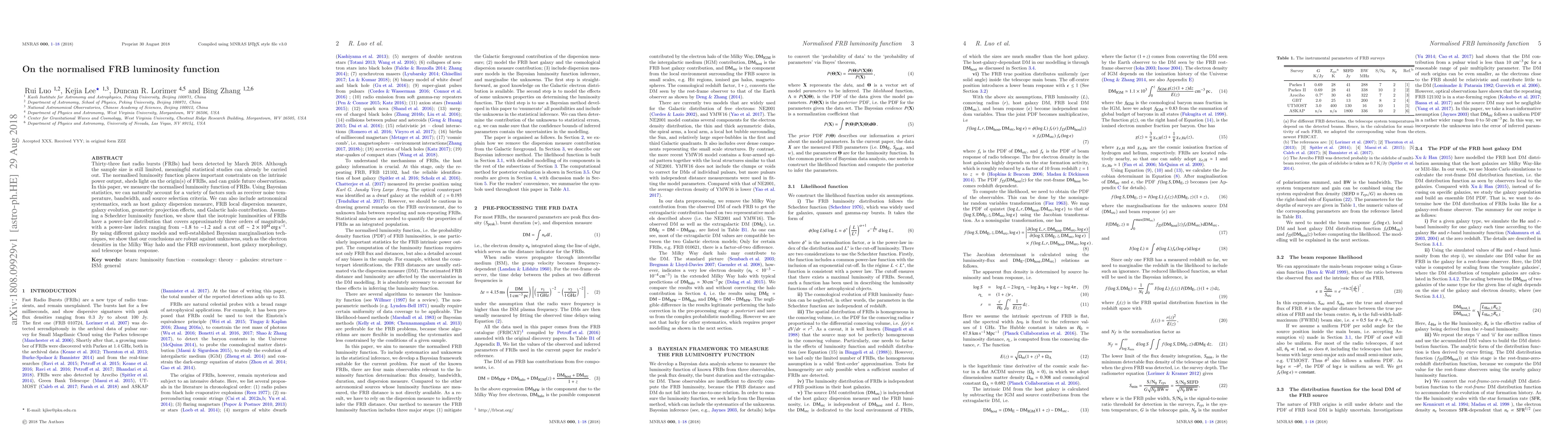 Researchers measured the normalised luminosity function of 33 Fast Radio Bursts (FRBs), finding a power-law distribution with a cut off at approximately $2 imes 10^{44}$ erg s$^{-1}$. The results provide constraints on the intrinsic power output and shed light on the origins of FRBs.