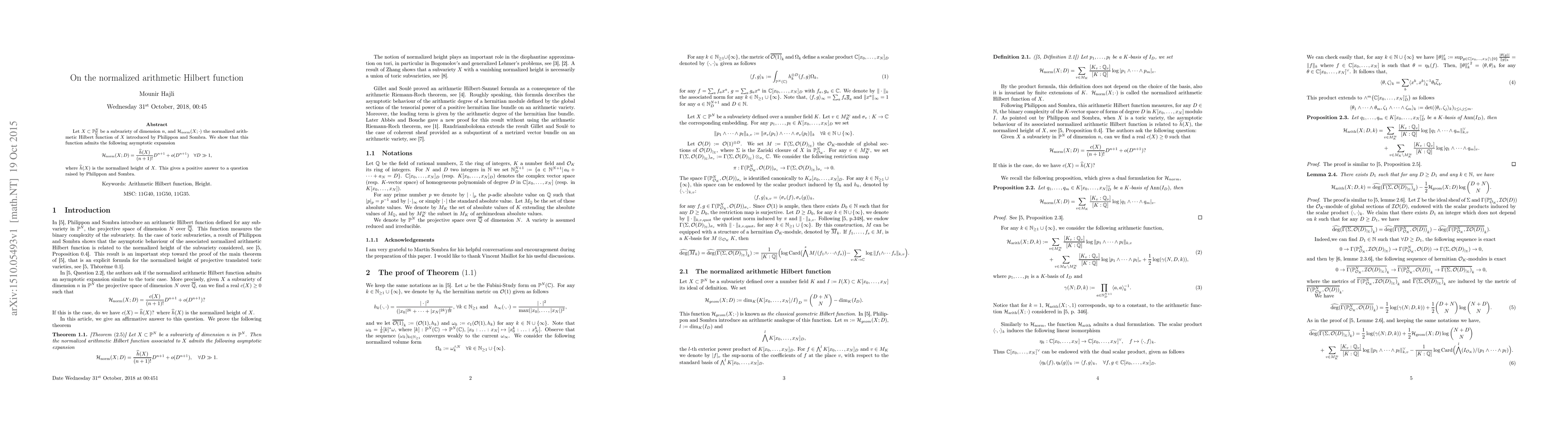 Researchers prove the normalized arithmetic Hilbert function of a subvariety in projective space has an asymptotic expansion related to its height, resolving a question posed by Philippon and Sombra.